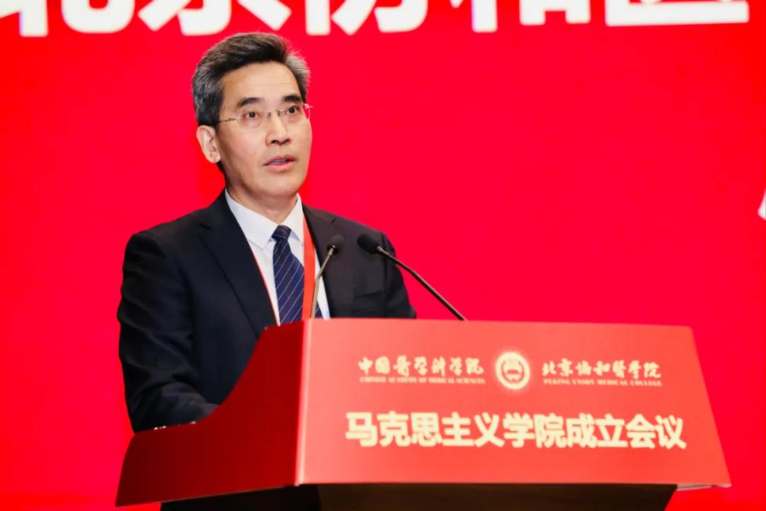 国家卫生健康委副主任曾益新致辞强调,马克思主义学院要在政治引领、开放办院、协同育人、服务社会上下功夫,聚焦马克思主义在卫生健康领域的运用规律研究,健全以马克思主义为指导的中国特色医学人文学科建设,发挥最高医学研究机构和最高医学教育机构的示范引领作用,坚持政治建院,人才强院,管理兴院,坚决扛起政治责任和社会责任,坚持“马院姓马,在马言马”的政治导向和办学原则,努力建成一流的马克思主义学院。