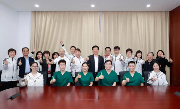 在出征决赛前,王辰院校长和张勤副院校长亲自为出征队伍进行总动员、为指导教师颁发感谢状、为参赛队员颁发证书并授队旗。王辰院校长对指导教师的辛勤付出表示由衷的感谢,对选手的积极备战给予了充分的肯定,希望参赛选手在大赛的舞台上放平心态,自信沉着,展现协和人的专业素养。