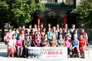 2015年9月13日上午九时, 在校友会的帮助下,协和护校68届同学在东单三条礼堂举行“北京协和医院护士学校六八届班庆会”。乔丽钧主持会议,张曼萍介绍了班庆会筹备情况,老班长程晓芳讲话后,由学生代表郭秀卿代表全班同学向金乔老师赠送《纪念册》,大家聆听了金乔老师的办学理念和养生经验,深感受益匪浅。中午在教授食堂,与三年级和二年级的学姐们共进午餐,共祝八十高龄而精力充沛的金老师生活快乐!
