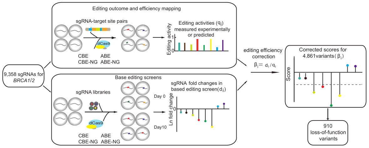 图1结合单碱基编辑效率校正的鉴定有害突变的高通量筛选方法