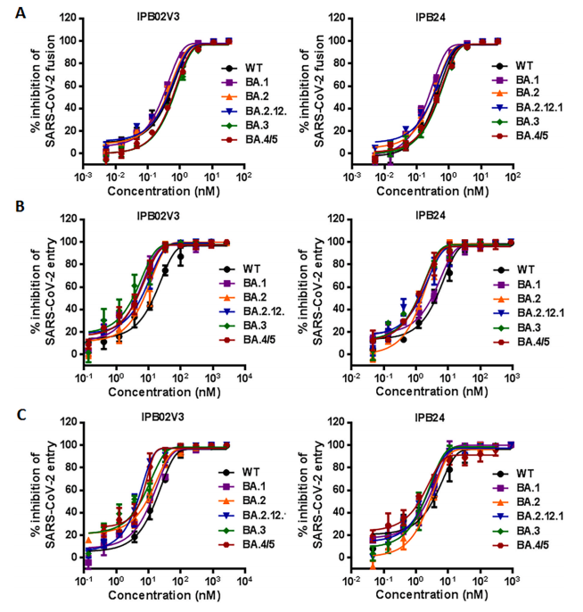 图. IPB02V3和IPB24对多种Omicron子系的抑制活性