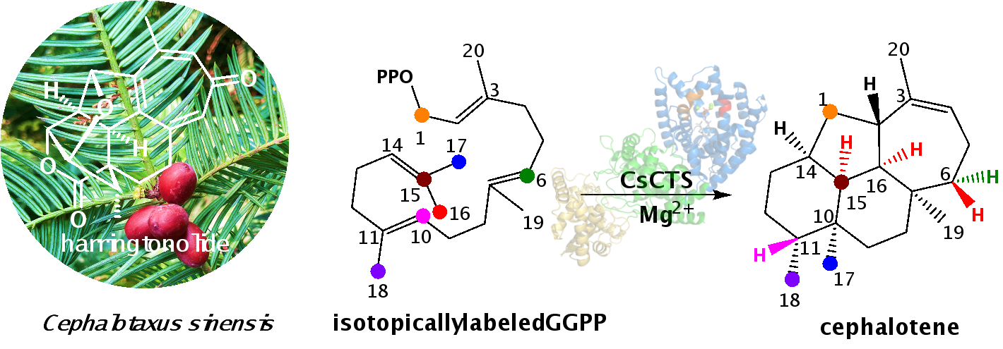 6月16日,国际顶级化学期刊Angewandte Chemie International Edition (德国应用化学)在线发表了beat365英国官方网站药物研究所戴均贵团队题为“Functional Characterization and Cyclization Mechanism of a Diterpene Synthase Catalyzing the Skeleton Formation of Cephalotane-type Diterpenoids”(三尖杉烷类二萜骨架形成二萜合酶的功能鉴定及其环化机制”的研究论文。该研究首次明确了海南粗榧内酯等三尖杉烷型二萜前体为三尖杉烯(1,cephalotene),并阐明了其环化机制。