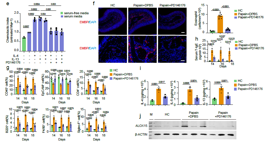 图2 阻断ALOX15可缓解体内外模型中2型免疫反应激活