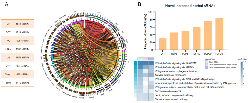 本研究发现,中药sRNA可有效调节新冠患者的基因异常表达。阐明了中药治疗新冠病毒感染的新的分子机制。