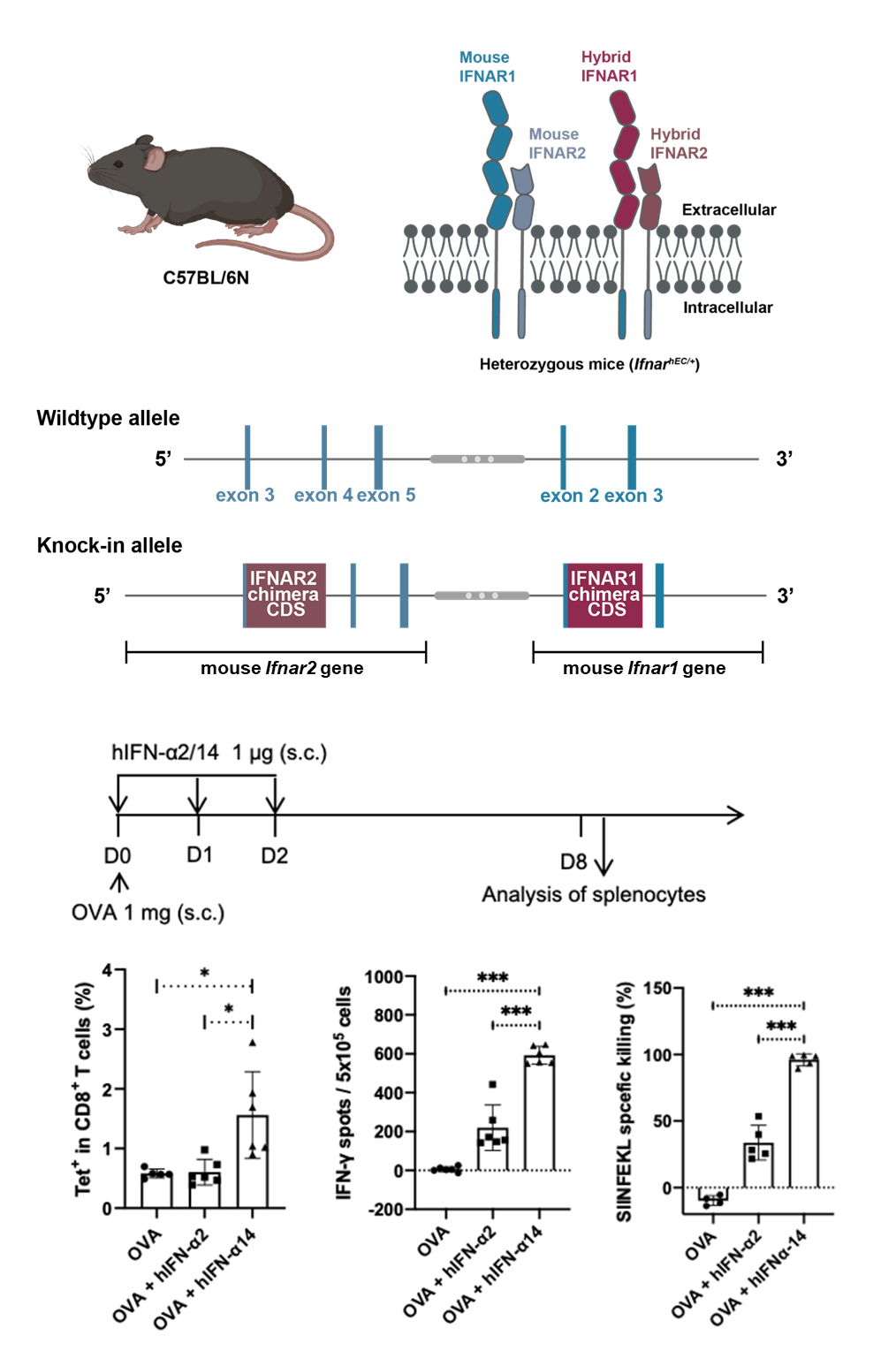 图. IFNAR-hEC小鼠模型的构建策略及其在人IFN-α亚型研究中的应用