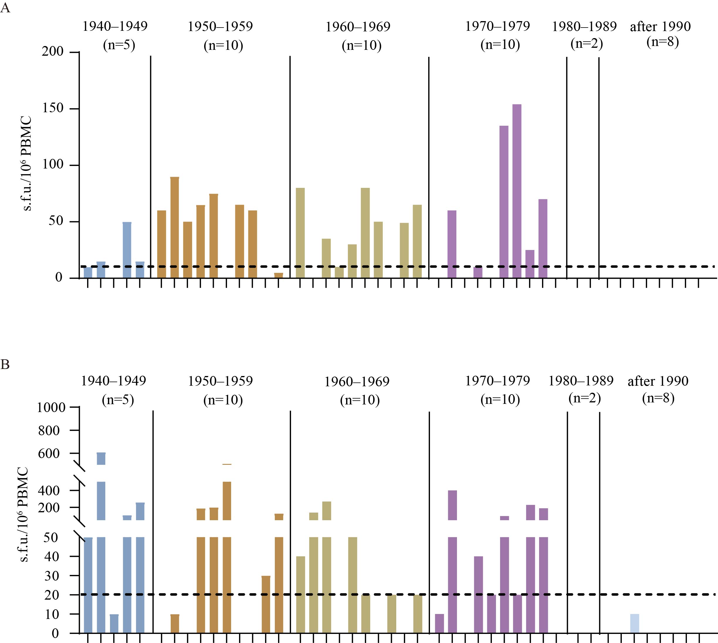 作为天花疫苗,痘苗病毒天坛株(VTT)在中国消灭天花的卫生运动中发挥了重要作用。1980年世卫组织宣布根除天花后,国内停止了常规的天花疫苗接种。2022年9月中国报告了第一例猴痘输入性病例,为系统评价中国人群体内的针对痘苗病毒的既存免疫力及对猴痘病毒的交叉保护作用,本研究采集了来自于北京、山西、黑龙江、湖北以及深圳市的1,070例健康人外周血样本,进行针对VTT的抗体、记忆性B细胞和记忆性T细胞免疫学分析。在参与研究的人群中,478例出生于1930–1979年,592例出生于1980–2008年。研究发现,在1980年以前出生的人群中,28.7%的人检测到针对VTT的中和抗体,71.4%的人检测到记忆B细胞反应,65.7%的人检测到记忆T细胞反应。而1980后出生人群,几乎检测不到针对VTT 的抗体、记忆性B细胞和记忆性T细胞免疫反应。上述数据表明,1980年前出生的人群针对VTT的中和抗体水平在衰减,但大多数人仍存在针对VTT的记忆性B细胞和记忆性T细胞免疫反应,由于VTT与猴痘病毒存在较高的序列同源性,猴痘病毒再暴露或疫苗接种后,1980年前出生人群的免疫记忆可以迅速活化并产生保护性免疫反应,但1980年后出生的人群普遍缺乏针对猴痘病毒的免疫力。上述研究为猴痘疫苗的接种策略提供重要的数据支持。