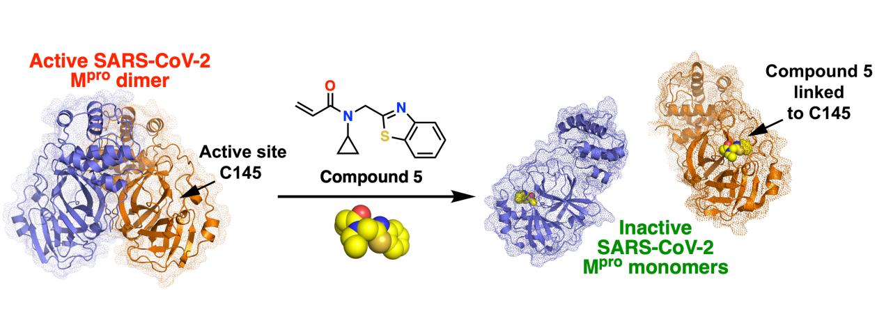 图. 化合物5通过改变SARS-CoV-2 Mpro 的聚集状态而发挥抑制作用