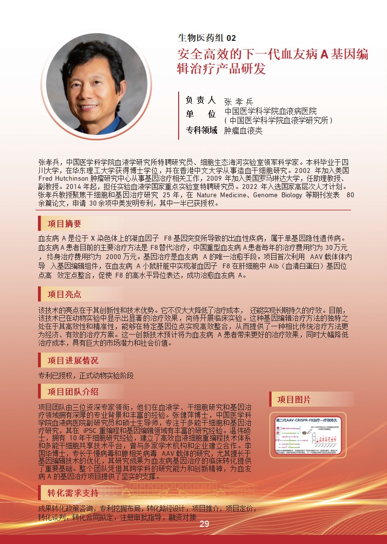 安全高效的下一代血友病 A 基因编辑治疗产品研发 |