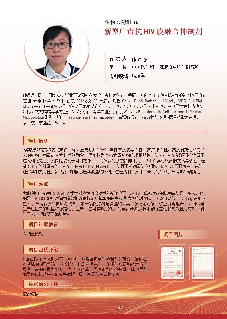 新型广谱抗 HIV 膜融合抑制剂 |