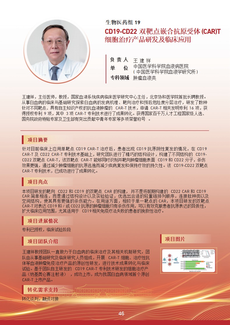 CD19-CD22 双靶点嵌合抗原受体(CAR)T 细胞治疗产品研发及 临床应用 |