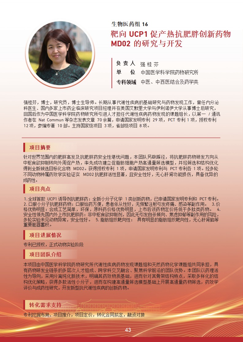 靶向 UCP1 促产热抗肥胖创新药物 MD02 的研究与开发 |