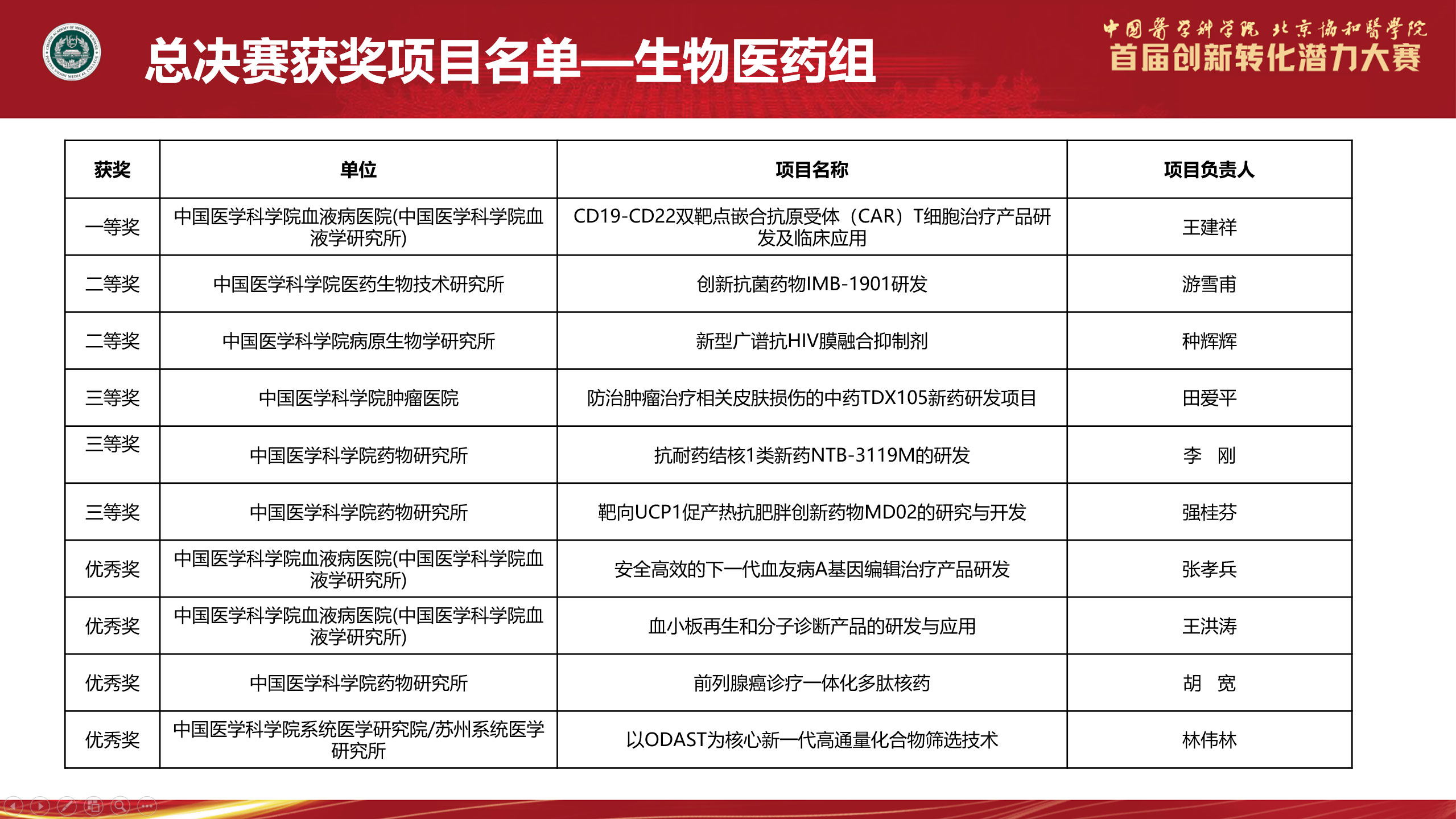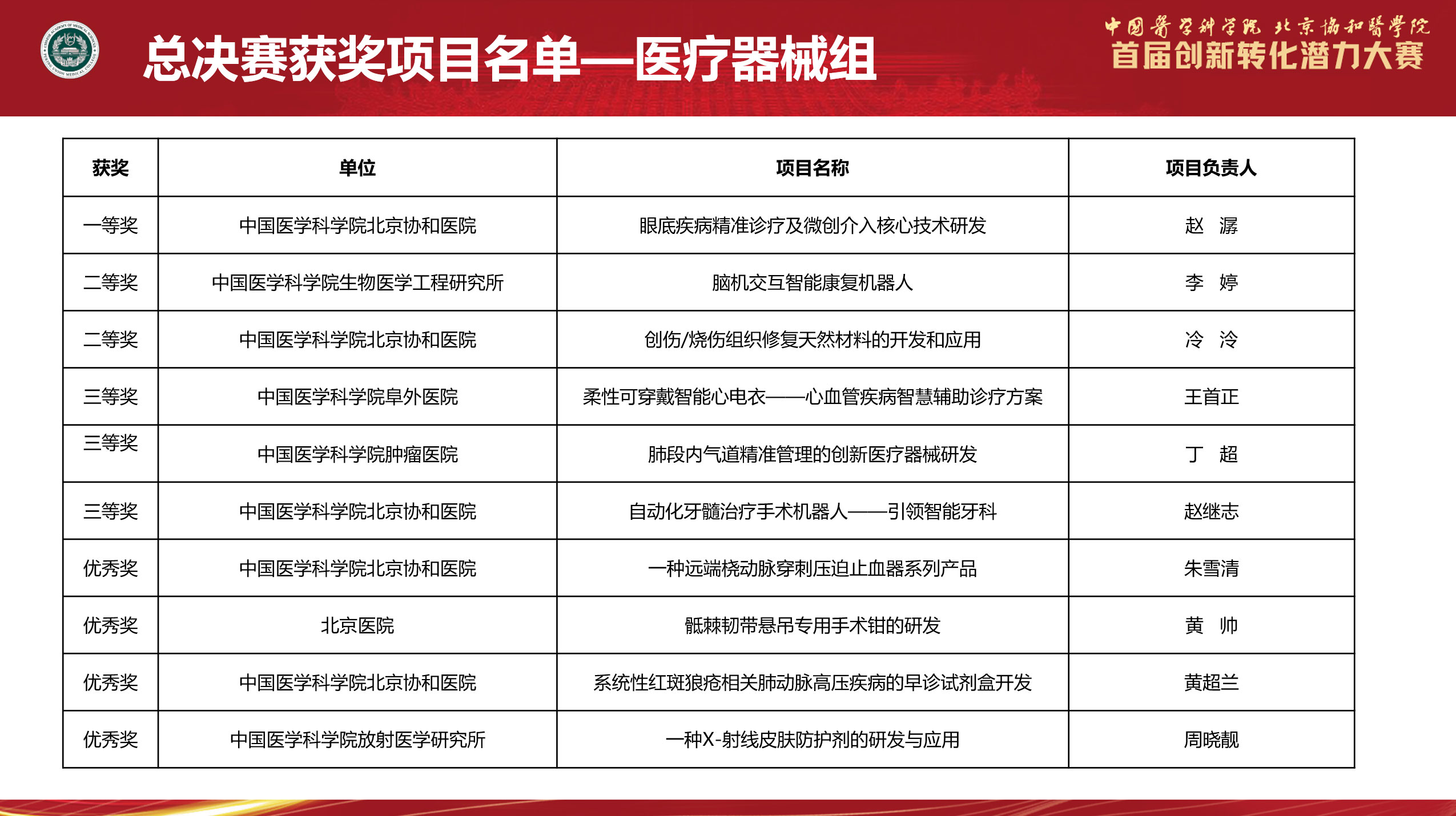 首届创新转化大赛获奖项目