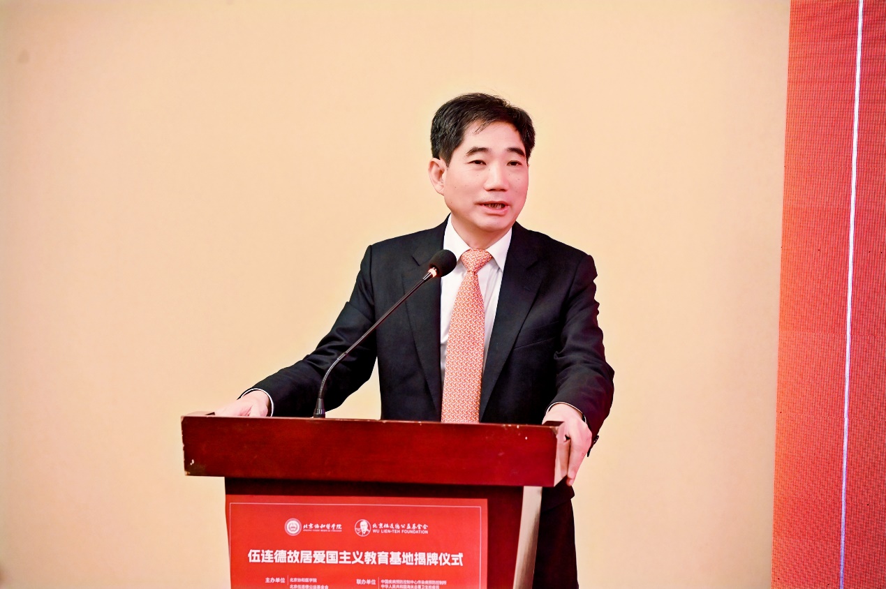 邓海华书记在揭幕仪式上发表讲话,他表示伍连德先生是我国公共卫生事业的先驱,他与beat365英国官方网站有着深厚的渊源,对学校的建立和发展起到了重要作用。在伍连德故居设立爱国主义教育基地,不仅是对伍博士个人成就的纪念,更是传承与弘扬以伍连德博士为代表的医学家的科学精神与家国情怀,激发广大学者、民众为建设健康中国贡献智慧和力量具有重要作用。未来,院校将与各共建单位一起,深入学习贯彻习近平新时代中国特色社会主义思想,开展新时代爱国主义教育,加强基地建设和管理,通过定期举办主题展览、开展多样化的教育活动、利用新媒体平台进行广泛宣传、与学校和社区深入合作、广泛开展国际交流、加强志愿者队伍建设、开展健康科普和学术活动等,让爱国主义教育基地更好地发挥其功能和作用。