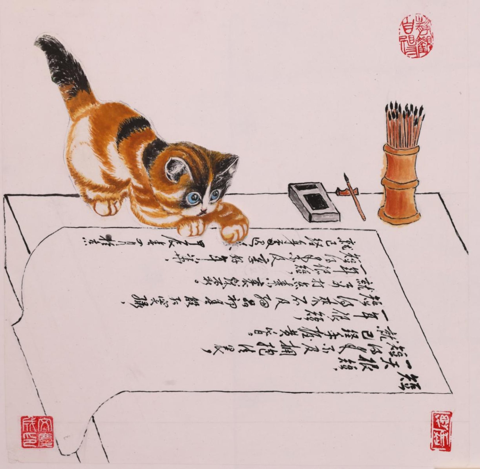 《猫观书法》