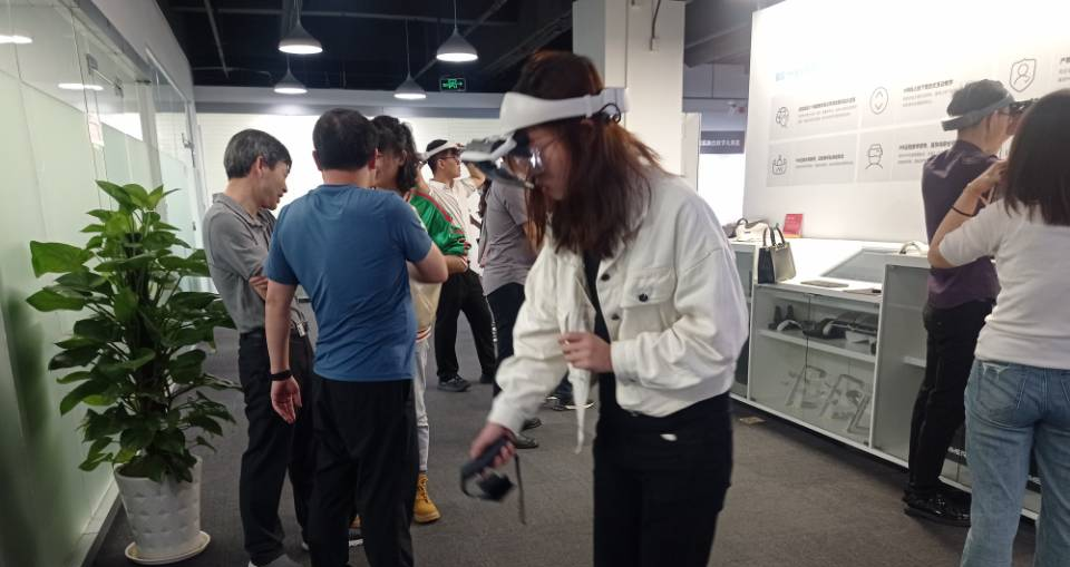 研讨会期间,参会人员赴广东虚拟现实技术公司(燧光)实地走访学习,该公司重点展示了虚拟现实技术在军事、文旅、教育三个方面的新应用、新成果、新产品。