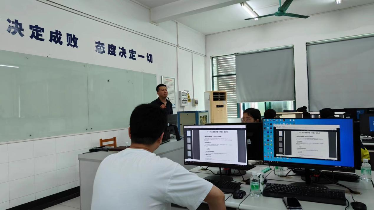 培训内容由资深企业工程师郭钊老师负责讲授,围绕网站前端开发、主流前端框架进行项目案例教学,帮助相关教学负责人能够将标准中对职业技能要求的描述转化为知识点,强化“1+X”证书Web前端开发培训师资队伍建设。