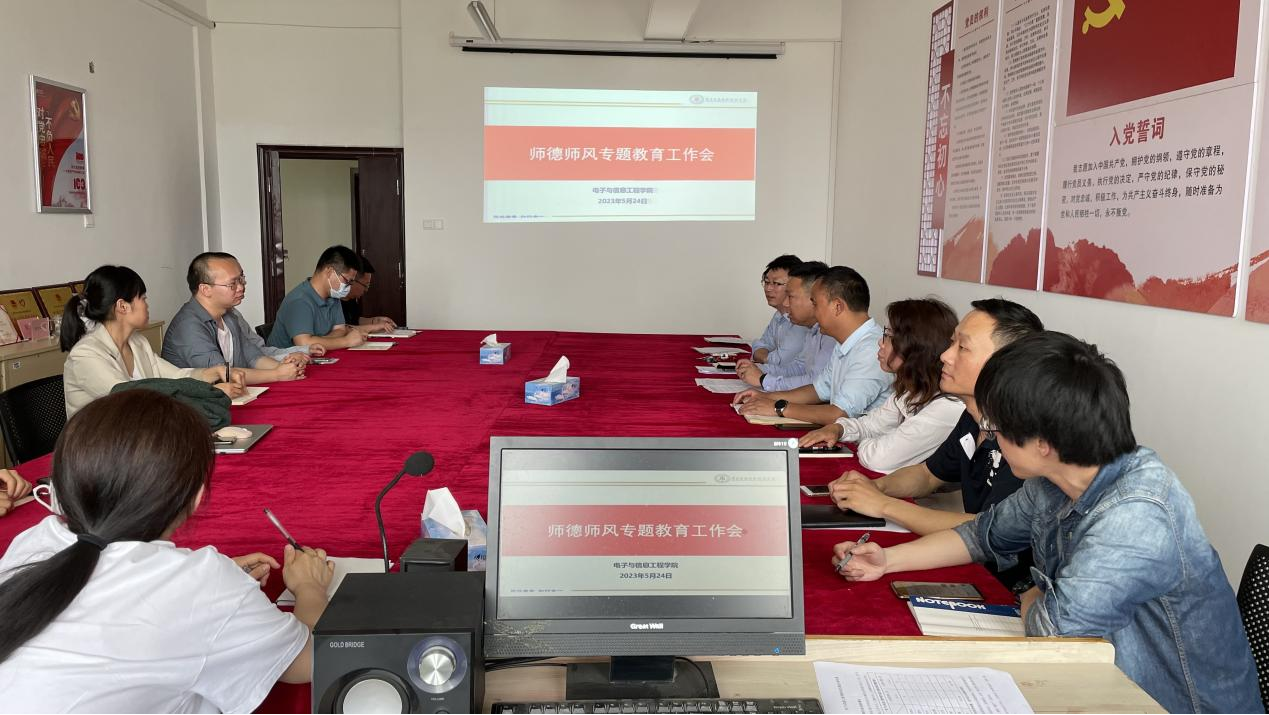 5月24日,学院在会议室1407召开师德师风专题教育工作会,全体教职工参加会议,会议由院长邹水龙主持。