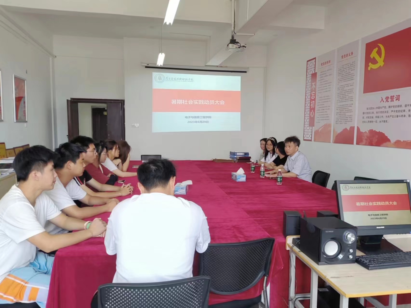 会上,带队老师赵威介绍了暑期社会实践活动的组织实施方案。本次暑期社会实践活动以“学习二十大、跟党走、奋进新征程”为主题,他们将奔赴江西省赣州市上犹县梅水乡青少年社会实践点,通过红色文化教育学习、体验传承非遗文化、科普教育、实践活动、深入基层等多种形式活动,研究乡村经济发展,引导学生将课堂学习与乡村实践紧密结合起来。