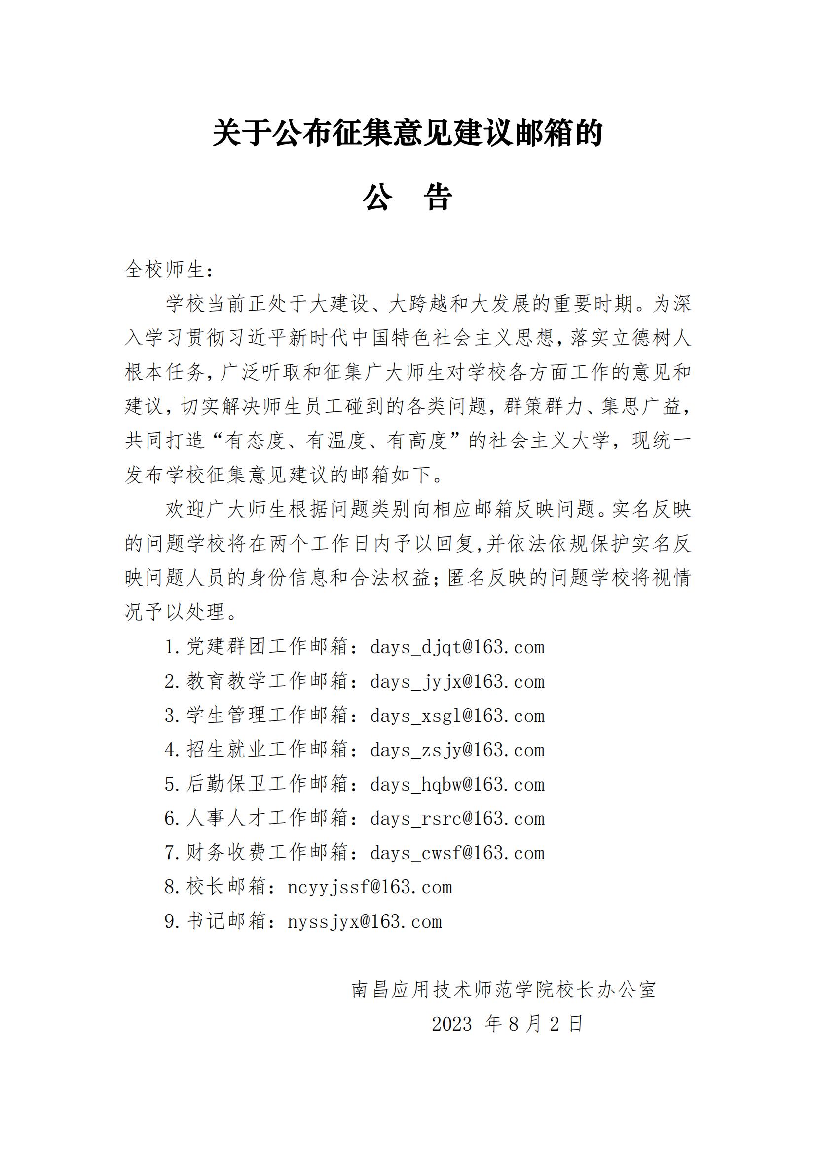 首页栏目 学院新闻 学院公告 学生工作 您现在的位置是:首页 > 首页栏目 > 学院公告 关于公布征集意见建议邮箱的公告 管理员2023-08-304797 上一篇 beat365中文登录入口关于报送学术委员会委员的公示 下一篇 beat365中文登录入口 2024-2025学年国家励志奖学金学生名单公示
