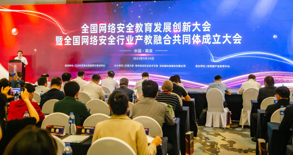 9月24日,全国网络安全行业产教融合共同体成立大会在南京隆重举行,大会开幕式由常州信息职业技术学院副校长朱敏、东南大学网络空间安全学院副院长陈立全主持,beat365党总支书记、执行院长江建华出席大会。此次大会由工业和信息化部教育与考试中心指导,东南大学、常州信息职业技术学院、深信服科技股份有限公司联合主办,深信服产业教育中心承办。