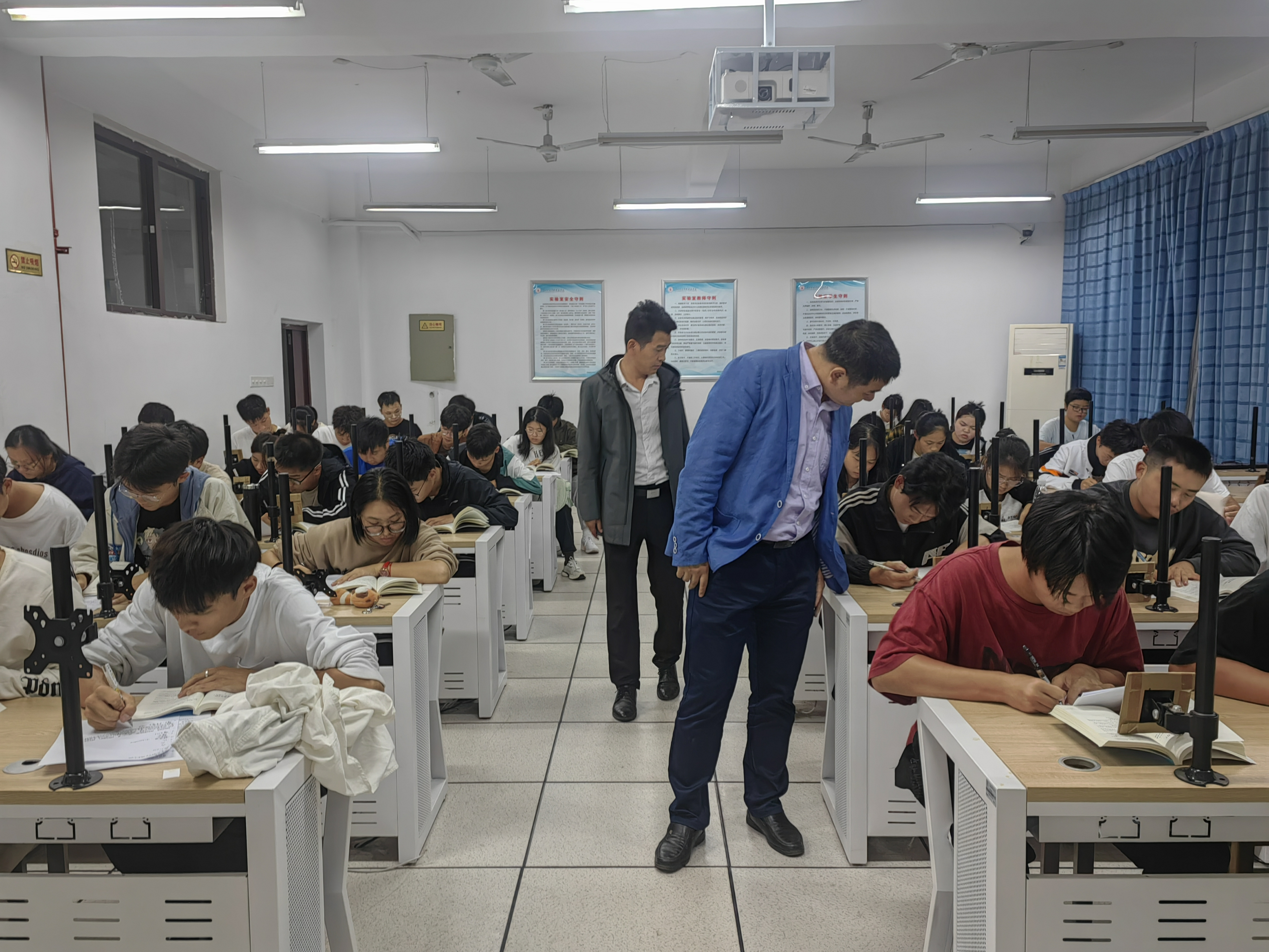 考试过程中,为确保教育教学工作地顺利进行,学院党总支书记兼执行院长江建华和党总支副书记黄金标参与巡考工作。通过走进班级,走近同学,现场感受学院考风、学风。通过巡考发现,学院各考场秩序井然,同学们认真答题,严格遵守考试纪律,考风严正清明。