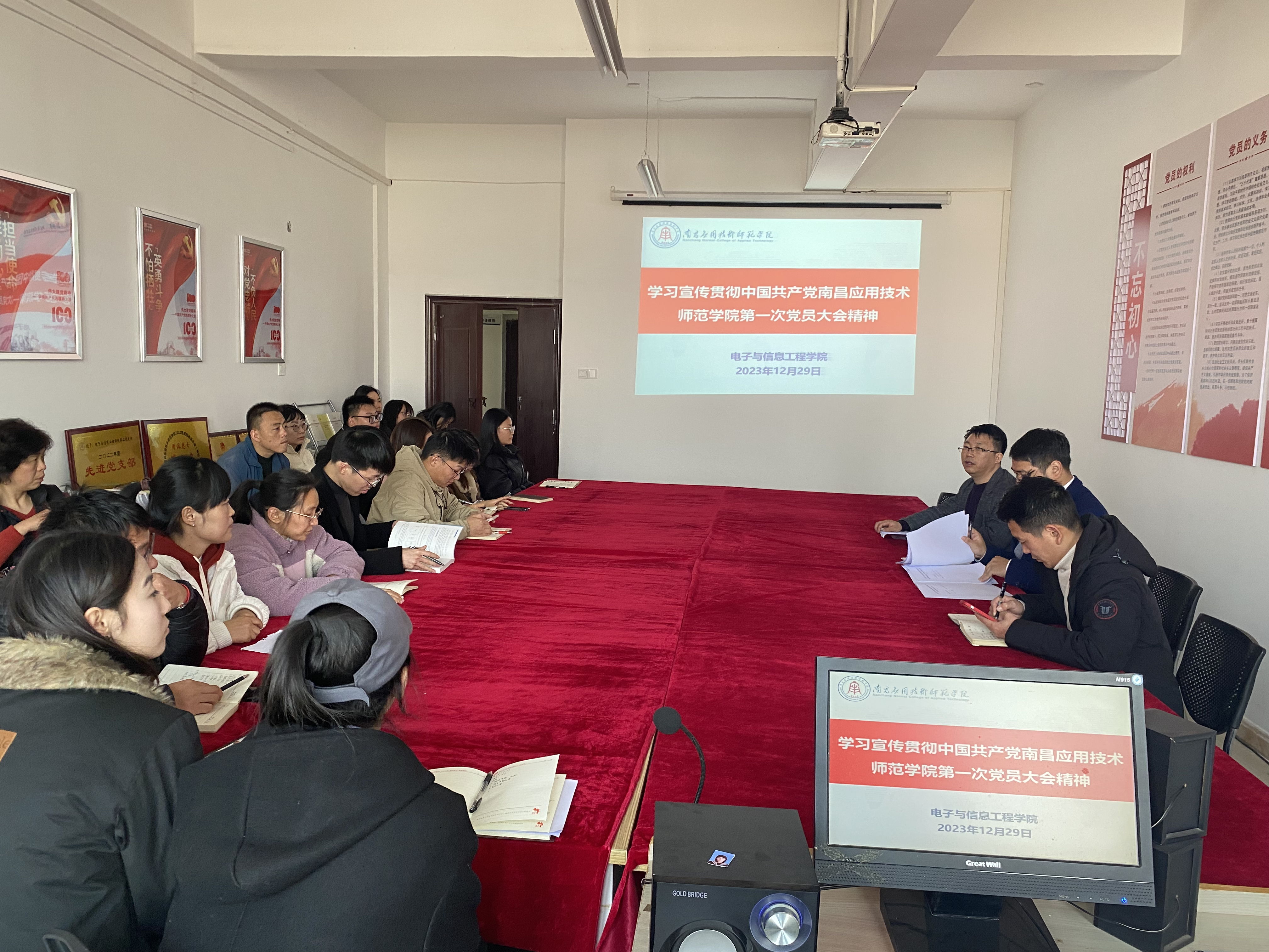 为庆祝我校第一次党员大会的顺利召开,进一步推进作风建设,提升党员素质,丰富活动,实现以高质量党建引领教育高质量发展。beat365中文登录入口于2023年12月29日在1407会议室召开了学习宣传贯彻党员大会精神为主题的会议。会议由党总支书记江建华同志主持,全体教职工参加会议。