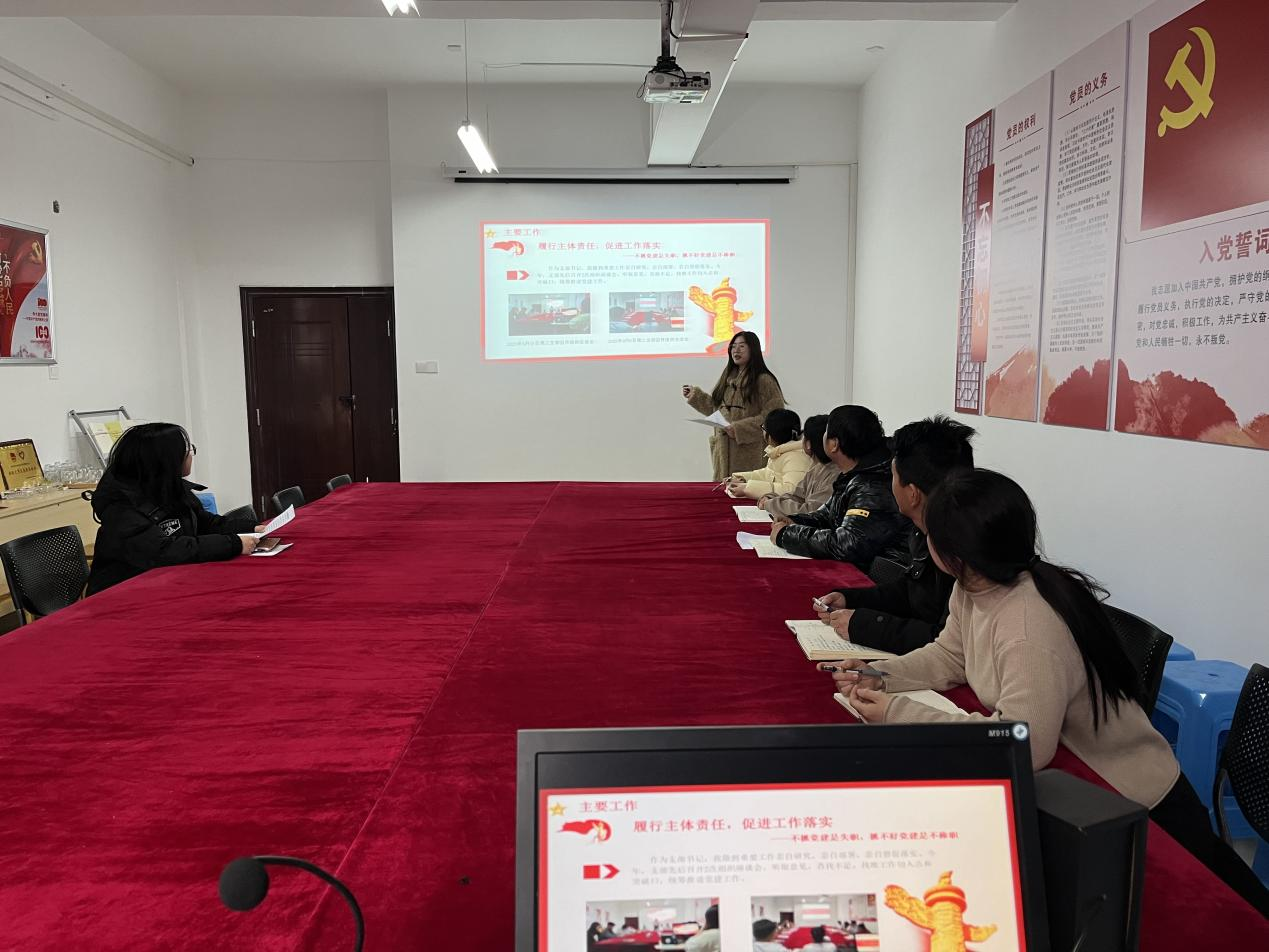 beat365中文登录入口第一党支部书记魏梓琪和第二党支部书记程明珠分别从履职情况、存在问题、下步打算三个方面汇报了一年以来党支部建设工作的成绩与成效。