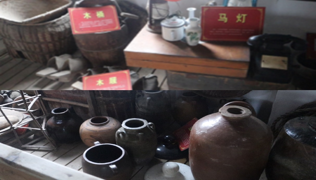 随后,一行人来到了官场村的民俗文化展室,室内展陈着斑驳的木犁、古老的油灯、泛黄的粮票等物件,这些物件留存着官场村人民的历史记忆,记载着他们生产生活的风俗习惯,馆内记载着一位深谙非遗技艺的杨爷爷,他可以用竹子巧妙地编织成各种生活用品以及工艺品,比如,簸箕、箩筐、背篓、筛子、竹凉席。他用一生让沉睡的竹子重焕新生,践行着牢记使命,传承非遗的决心。
