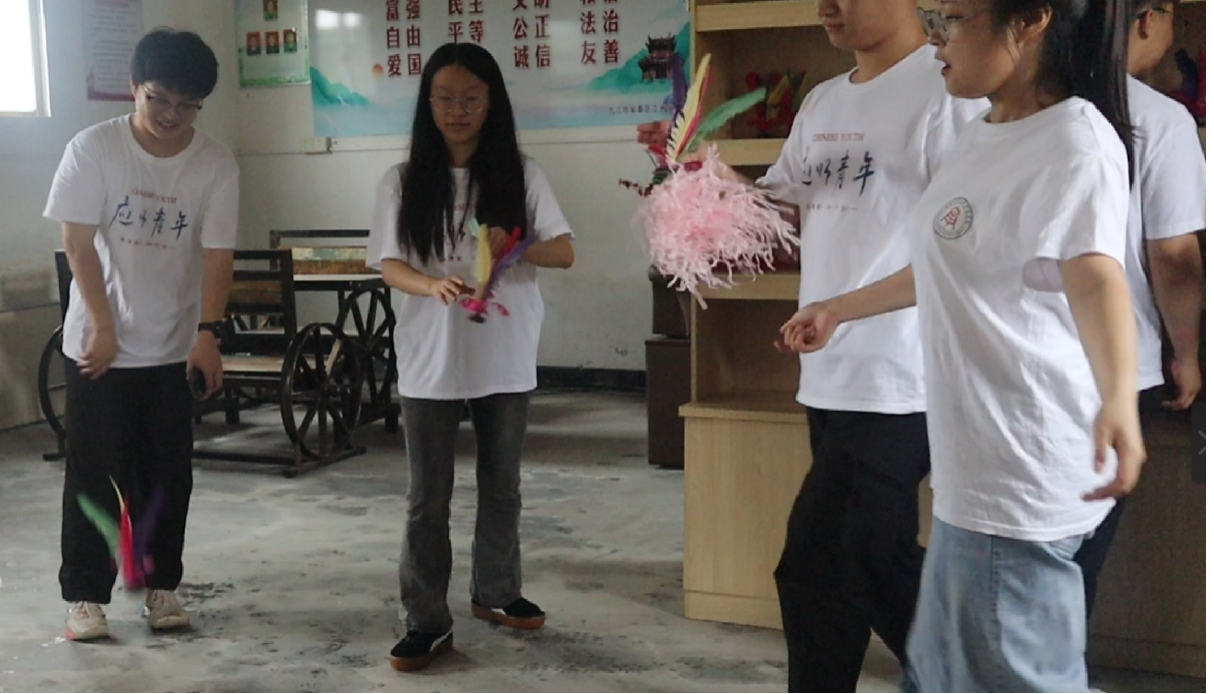 在民俗文化展室中同学们一起体验民俗文化,有的踢起了毽子,有的在打陀螺,充满了欢乐和新奇的氛围。这样的体验不仅让同学们更好地了解了民俗文化,也增进了彼此之间的友谊和团队合作精神。