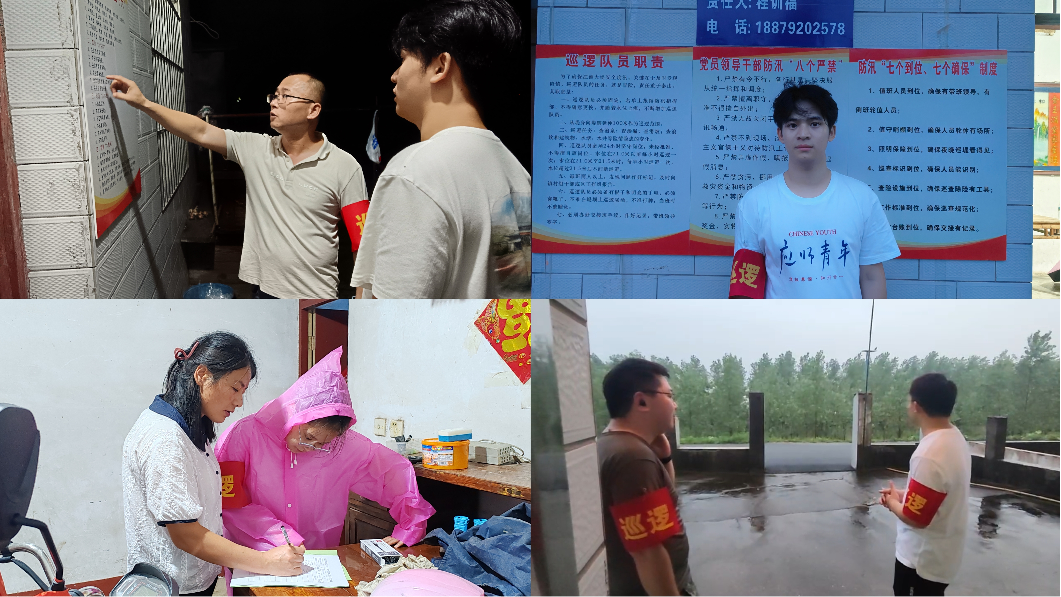 凡事预则立,不预则废。堤坝防洪,关键点在于“防”。针对汛期防洪,“扶苏之翼”实践队与村干各部门按照“防、避、抢”工作思路,严守江洲大堤安全度汛巡逻人员的职责,遵守防汛“八个严禁 防汛“七个到位、七个确保”制度,坚持预防为主、超前防范,防洪值班人员、机械设备、物资储备全部到岗到位。