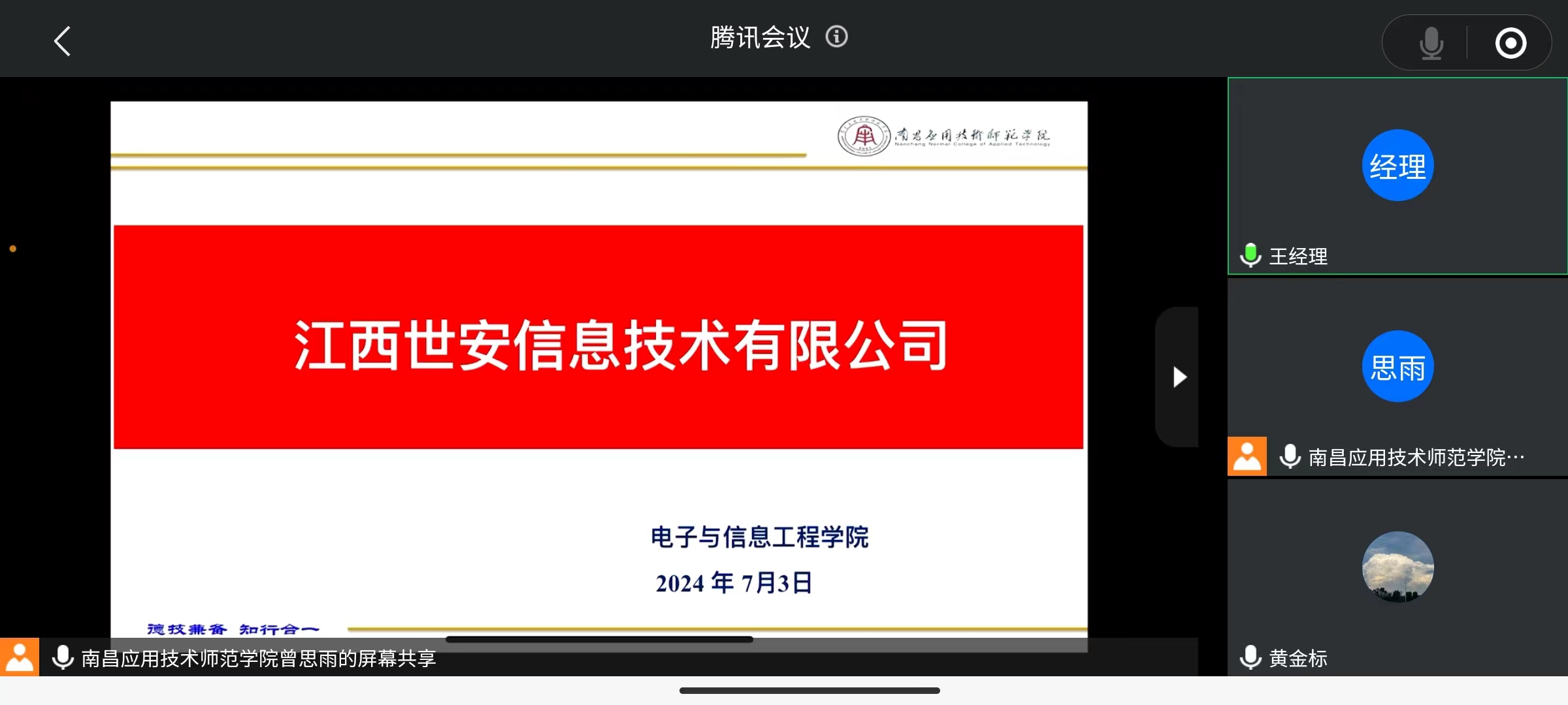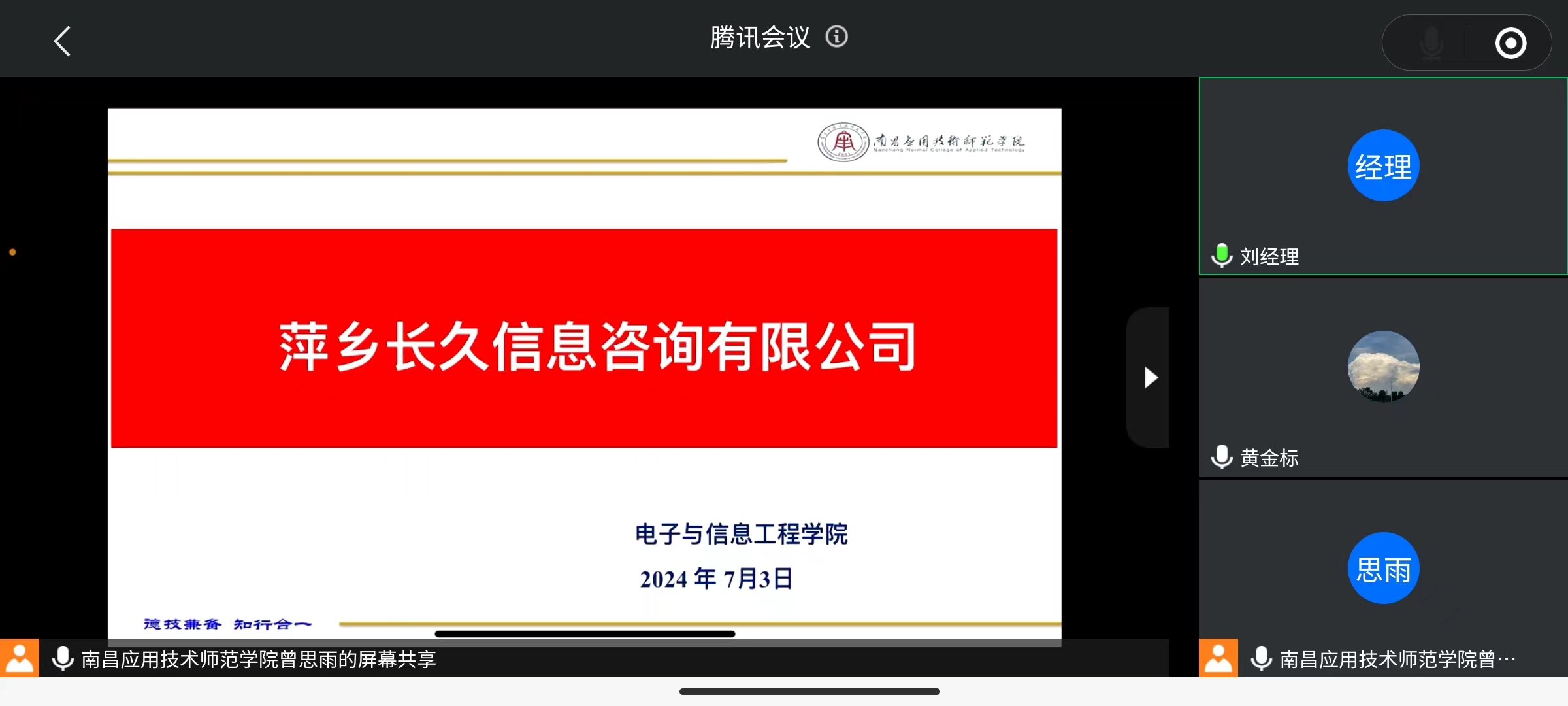 为开拓更多的就业岗位和机会,推动毕业生高质量充分就业。7月3日,beat365与萍乡长久信息咨询有限公司和江西世安信息技术有限公司开展线上访企拓岗校企合作交流会。电子与信息工程学院党总支副书记黄金标与就业专员曾思雨参加本次会议交流会。