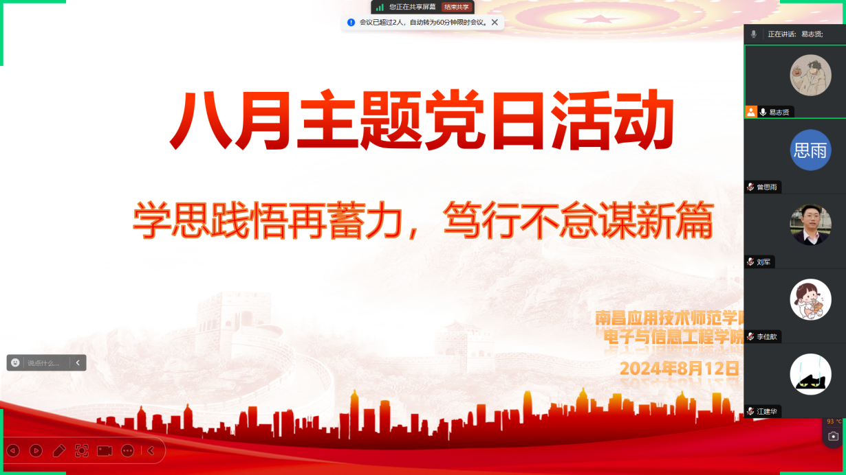 为学习贯彻党的二十届三中全会精神,领悟习近平新时代中国特色社会主义思想深刻内涵,为进一步全面深化改革、扎实稳健推进中国式现代化学习指明方向。beat365中文登录入口第一党支部于8月12日开展“学思践悟再蓄力,笃行不怠谋新篇”主题党日活动。
