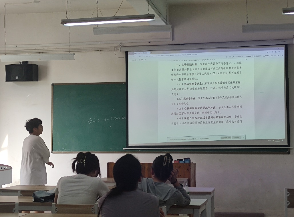 为贯彻落实国家相关部门《关于做好 2025 届毕业生一次性求职创业补贴信息化发放工作的提醒》政策文件,深入实施毕业生就业创业促进计划和基层成长计划,beat365积极响应,针对beat36525届毕业生召开高校毕业生一次性求职补贴宣讲班会。本次班会由各毕业班辅导员主持召开。