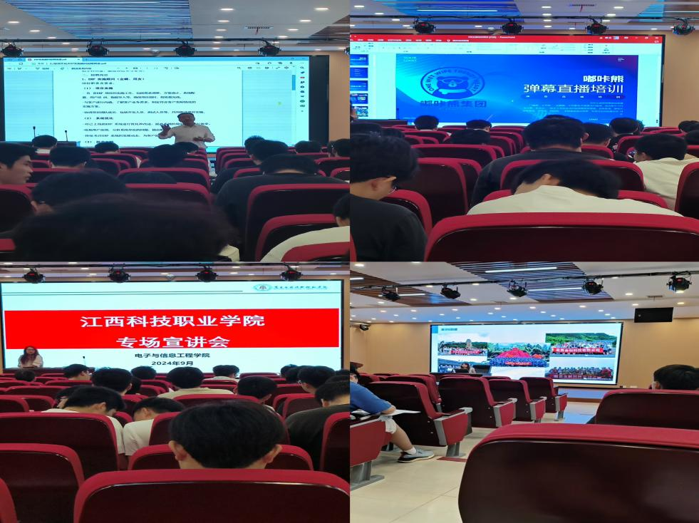 此次招聘会共邀请了五家企业,分别是金创科技有限公司、江西科技职业学院、卡嘟熊传媒有限公司、厚邦文化科技有限公司和江苏中科指南针机器人科技有限公司。在宣讲过程中,各公司校招负责人就公司发展历程、企业文化、业务板块、创新成果、人才晋升通道、薪酬福利及当前招聘岗位的具体要求等方面进行了详细介绍,并详细阐述了公司的优势和发展前景,为在场学生描绘了一幅清晰的职业蓝图。