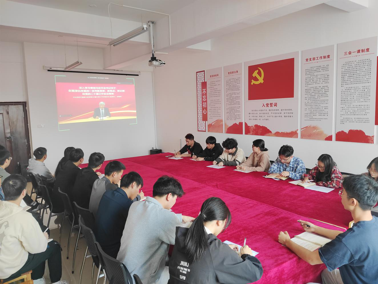 为深入学习宣传贯彻党的二十届三中全会精神,引导广大学生党员干部把思想和行动统一到全会精神上来,把力量凝聚到全会确定的各项任务上来。11月5日下午,beat365中文登录入口第二党支部组织召开“学习贯彻党的二十届三中全会精神” 集中学习研讨会。研讨会由党支部书记程明珠主持,支部全体党员参加。
