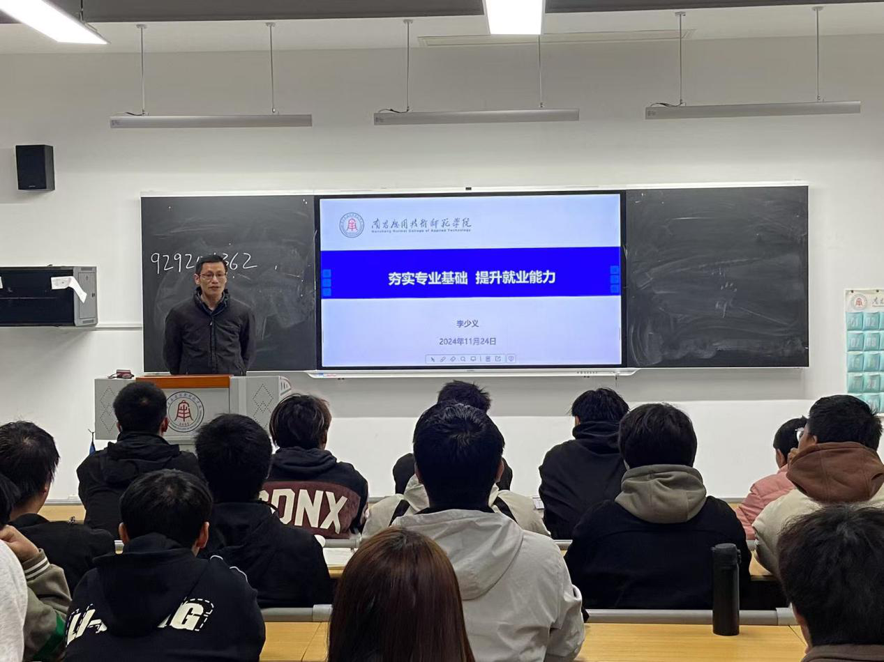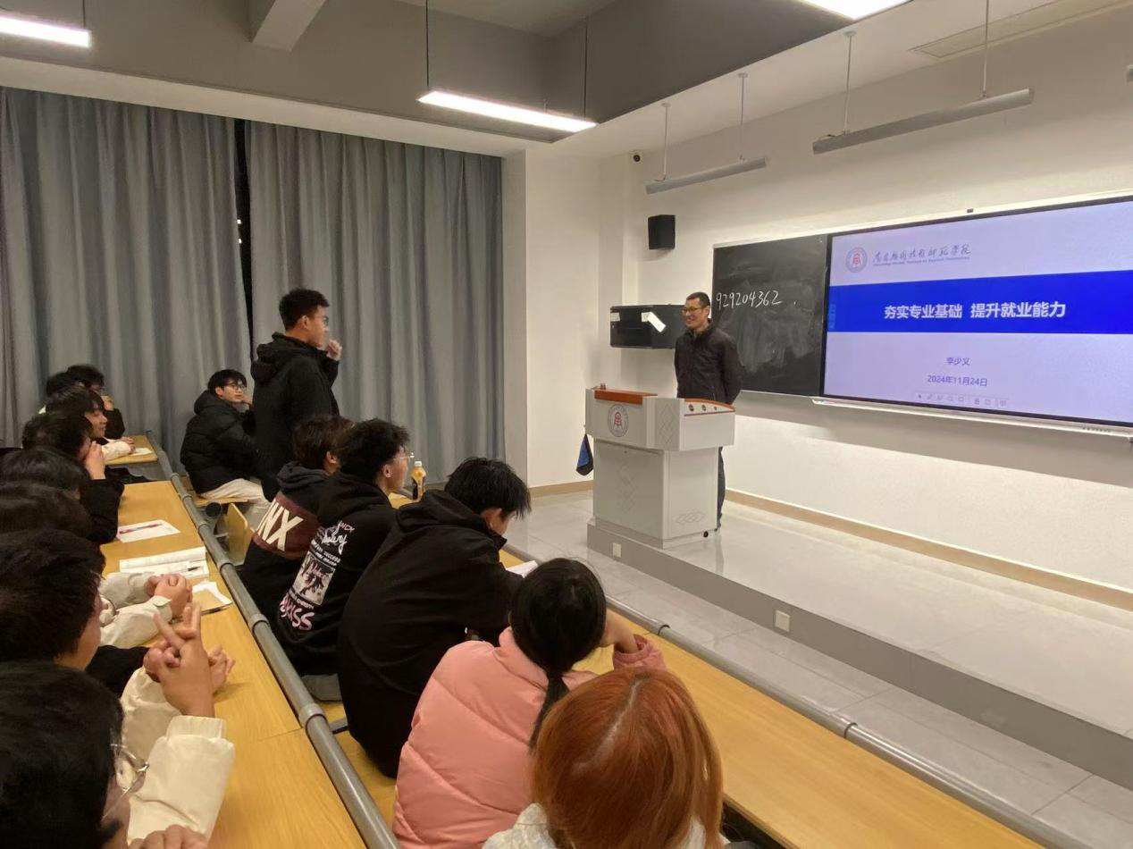 为帮助同学们深入了解当前就业形势,树立正确的就业观,11月24日,校长助理李少义深入beat365中文登录入口,以《夯实专业基础 提升就业能力》为题,为学院2024级电子信息工程专业新生开展专题讲座。
