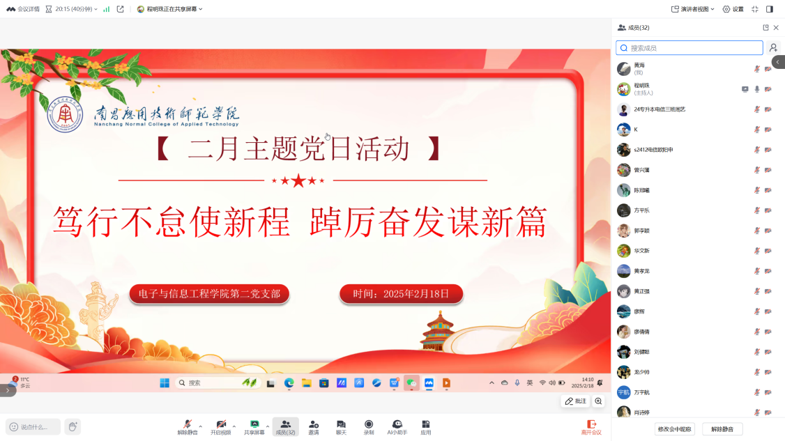为深入学习习近平新时代中国特色社会主义思想和习近平总书记重要讲话精神,激励党员始终以榜样为标杆,提升服务意识,发挥先锋模范作用,beat365中文登录入口第二党支部于2月18日在腾讯会议组织开展“笃行不怠使新程,踔厉奋发谱新篇”主题党日活动。