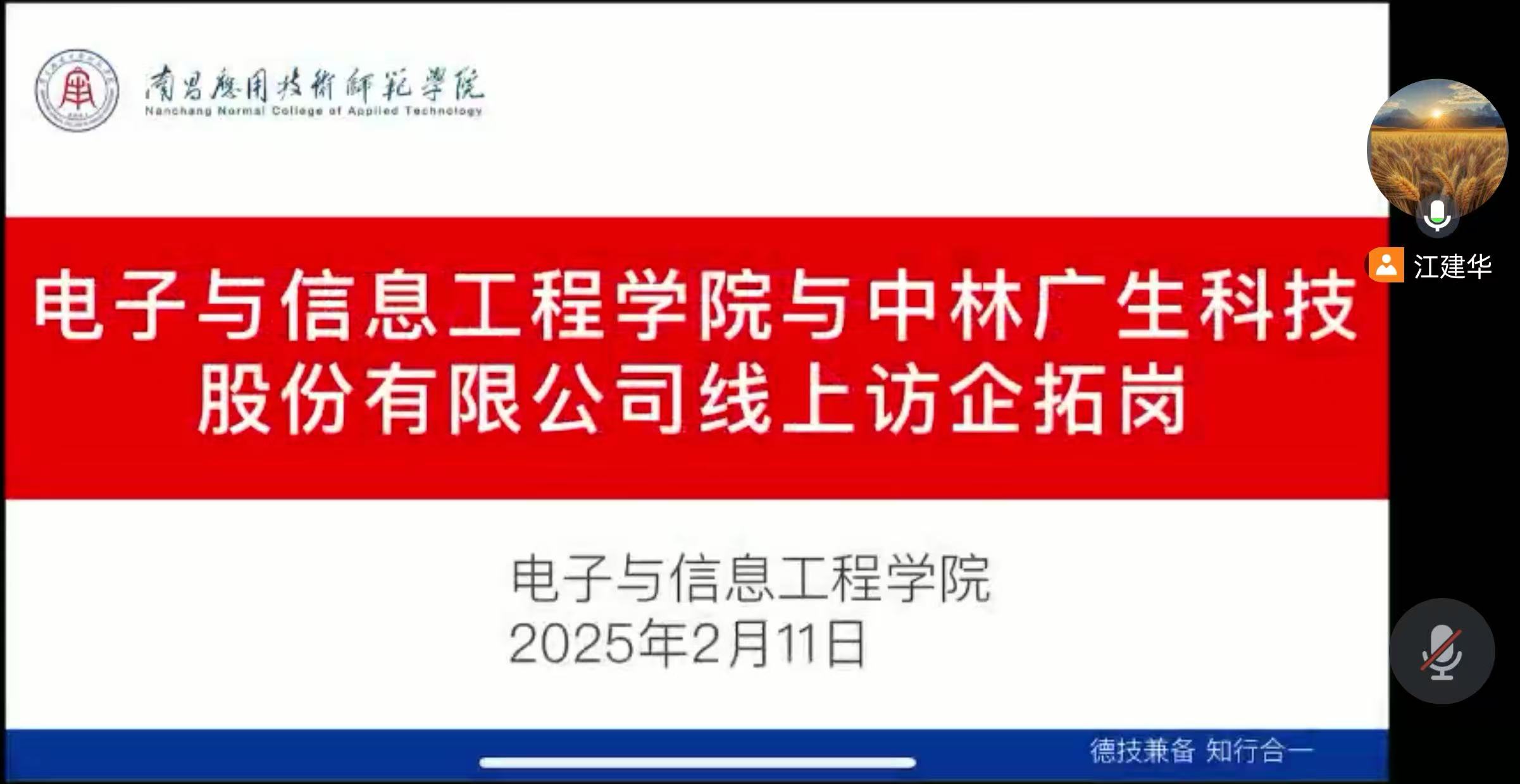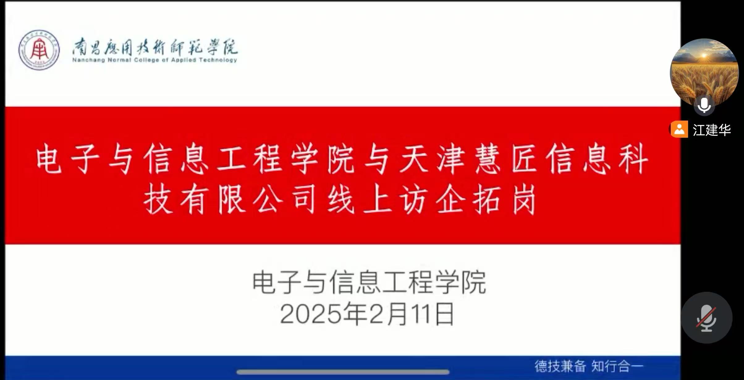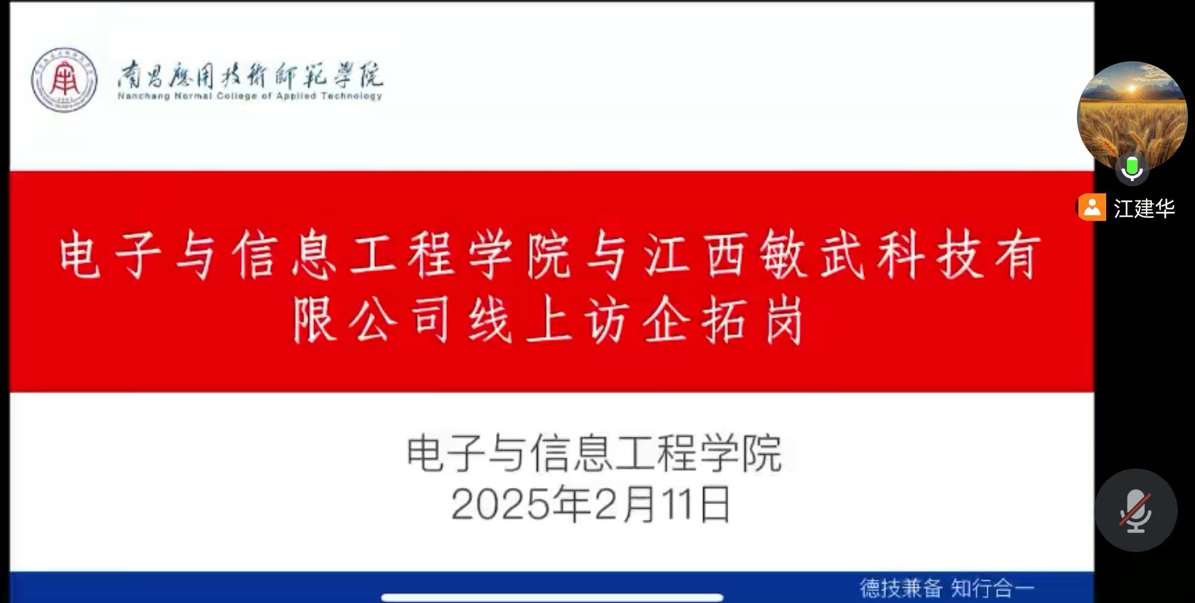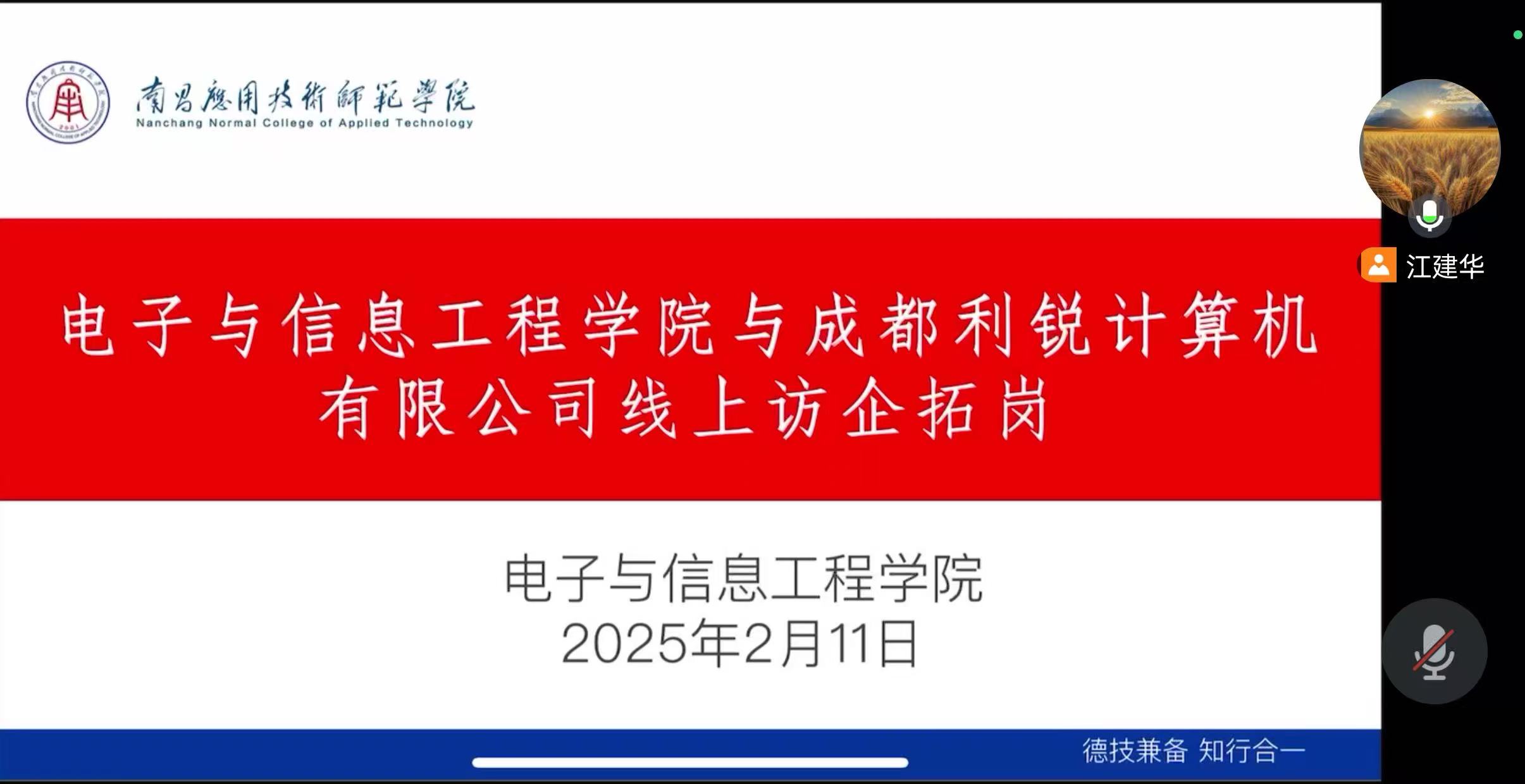 为做好beat3652025届毕业生就业工作,持续为毕业生与用人单位之间搭建供需沟通桥梁,电子与信息工程学院于2月11日举办了线上访企拓岗洽谈会。此次洽谈会邀请了成都利锐计算机有限公司、江西敏武科技有限公司、天津慧匠信息科技有限公司、中林广生科技股份有限公司等各企业代表进行宣讲,就业岗位覆盖电子与信息工程、计算机科学与技术、软件工程等相关专业,beat365党总支书记江建华出席会议。