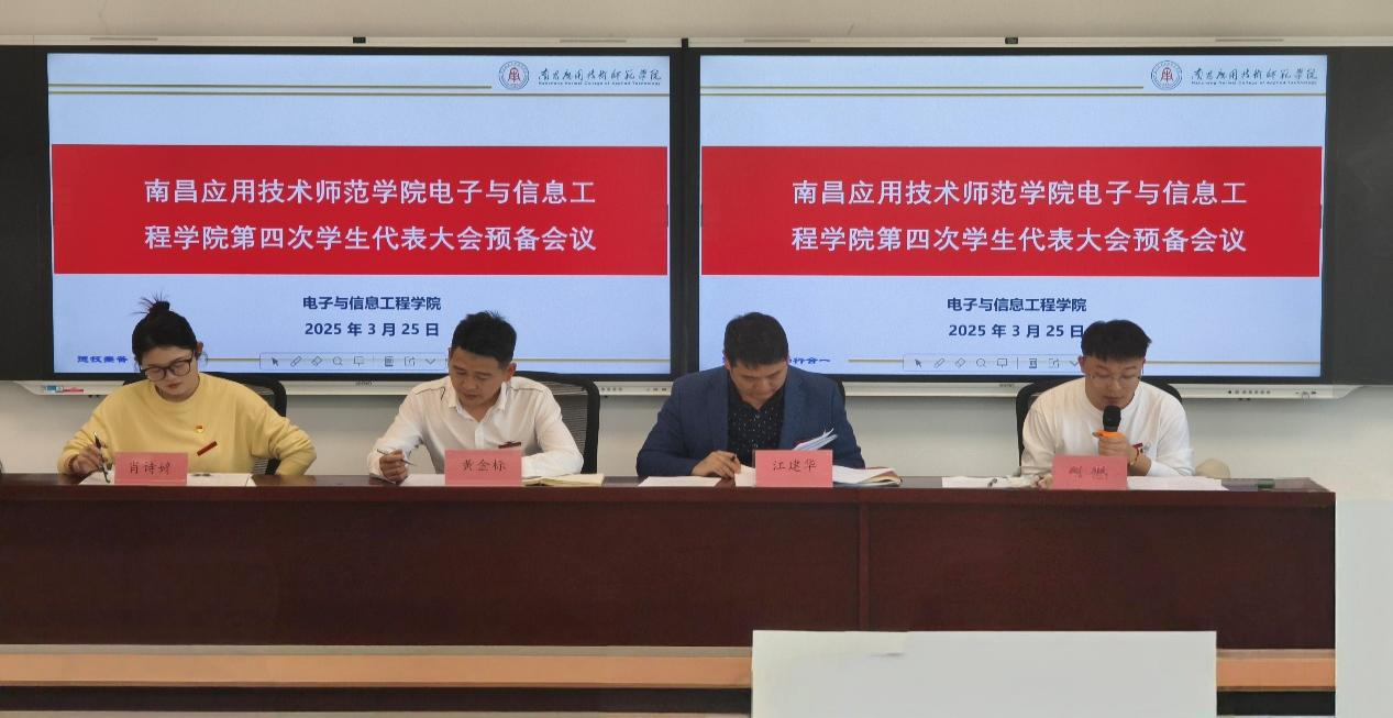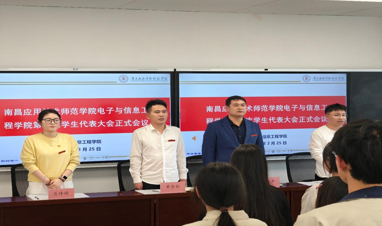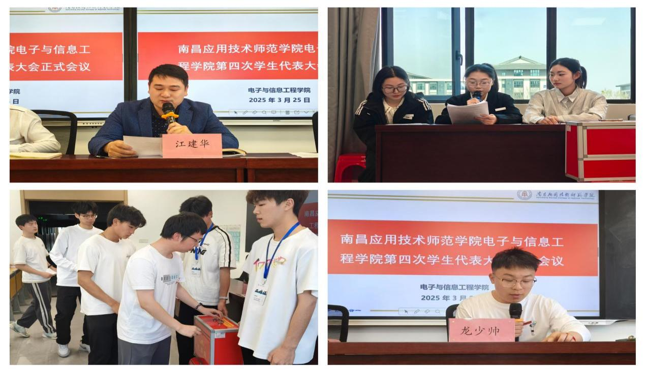 2025年3月25日下午,beat365中文登录入口第四次学生代表大会在沁苑2教B座B209召开。大会由分团委书记龙少帅主持,学院党总支书记江建华、副书记黄金标、学工科科长肖诗婷出席会议,160名学生代表参与本次会议。
