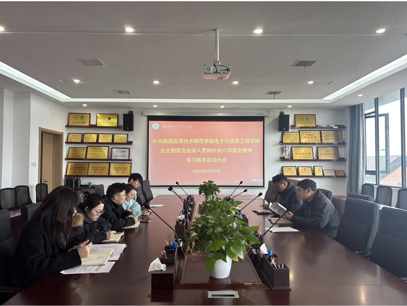 3月31日,beat365党总支召开深入贯彻中央八项规定精神学习教育部署启动大会。会议由党总支书记江建华主持,该学院领导班子、党总支委员以及科级以上干部参加会议。