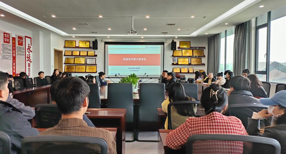 2025年4月1日下午,电信与信息工程学院在506会议室召开师风师德警示教育会。会议由院党总支书记江建华主持,全体教职工参加。会议围绕“师风师德典型案例分析”“师风师德建设重要性”等主题展开警示教育,旨在进一步加强教师队伍建设,规范教师职业行为,营造风清气正的育人环境。