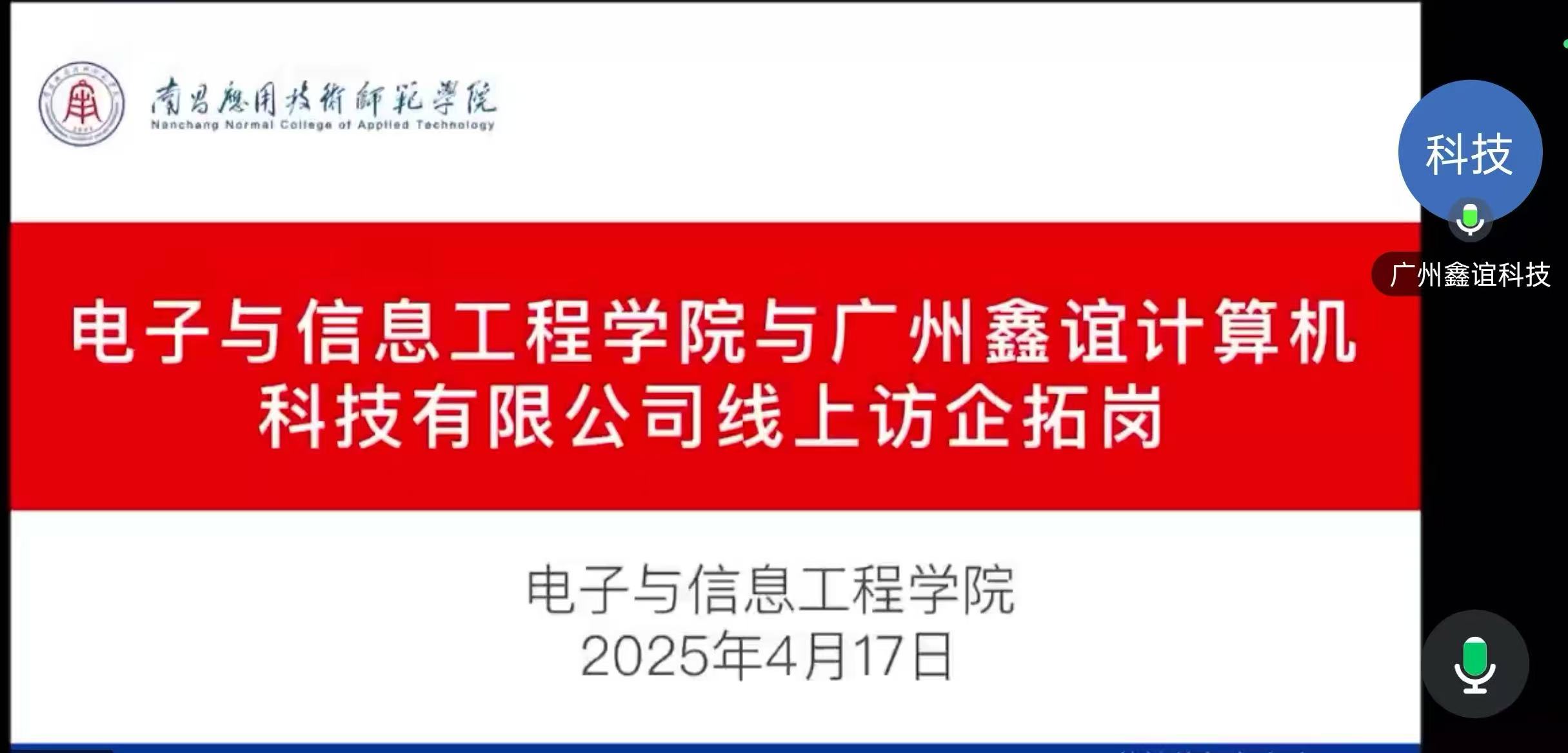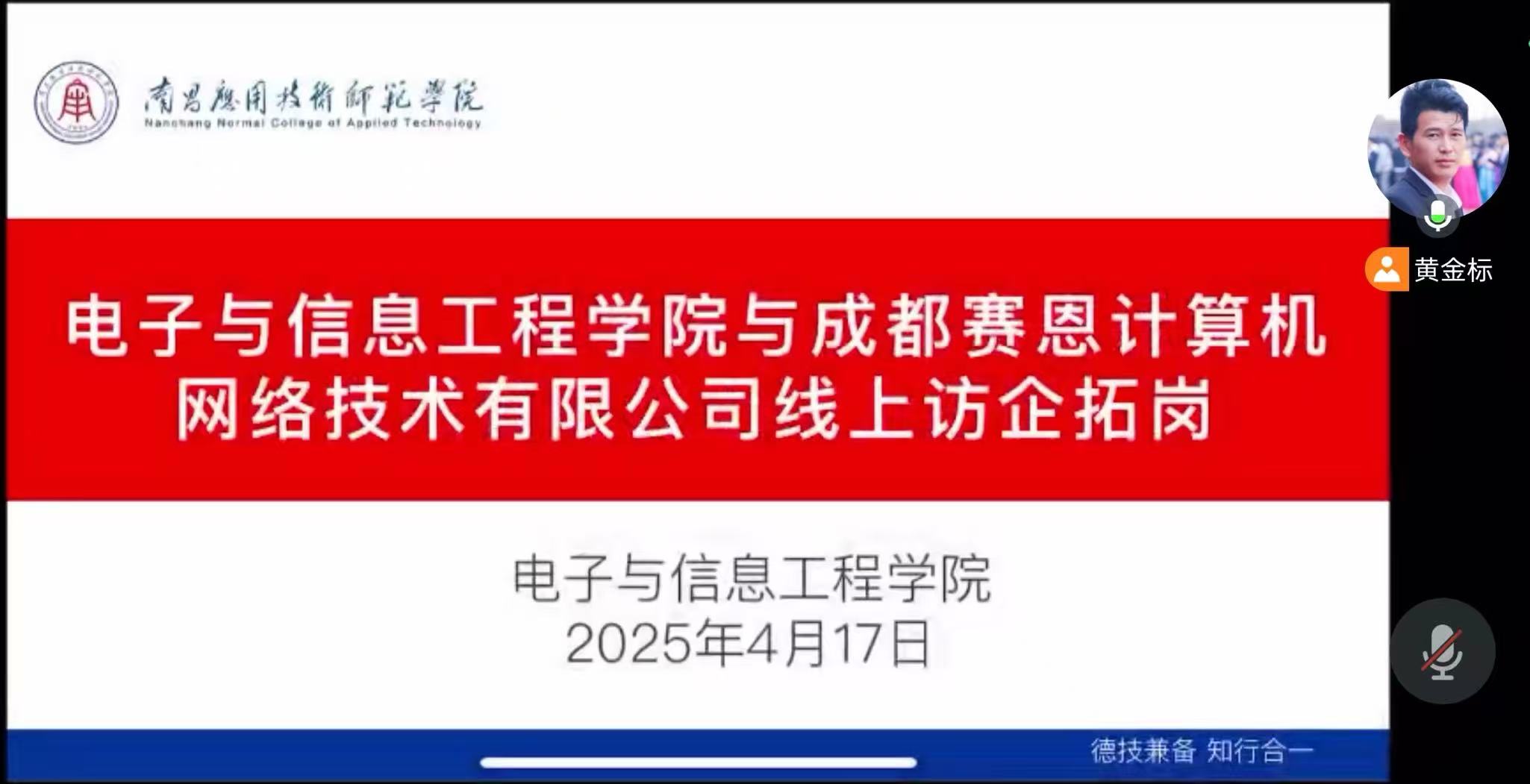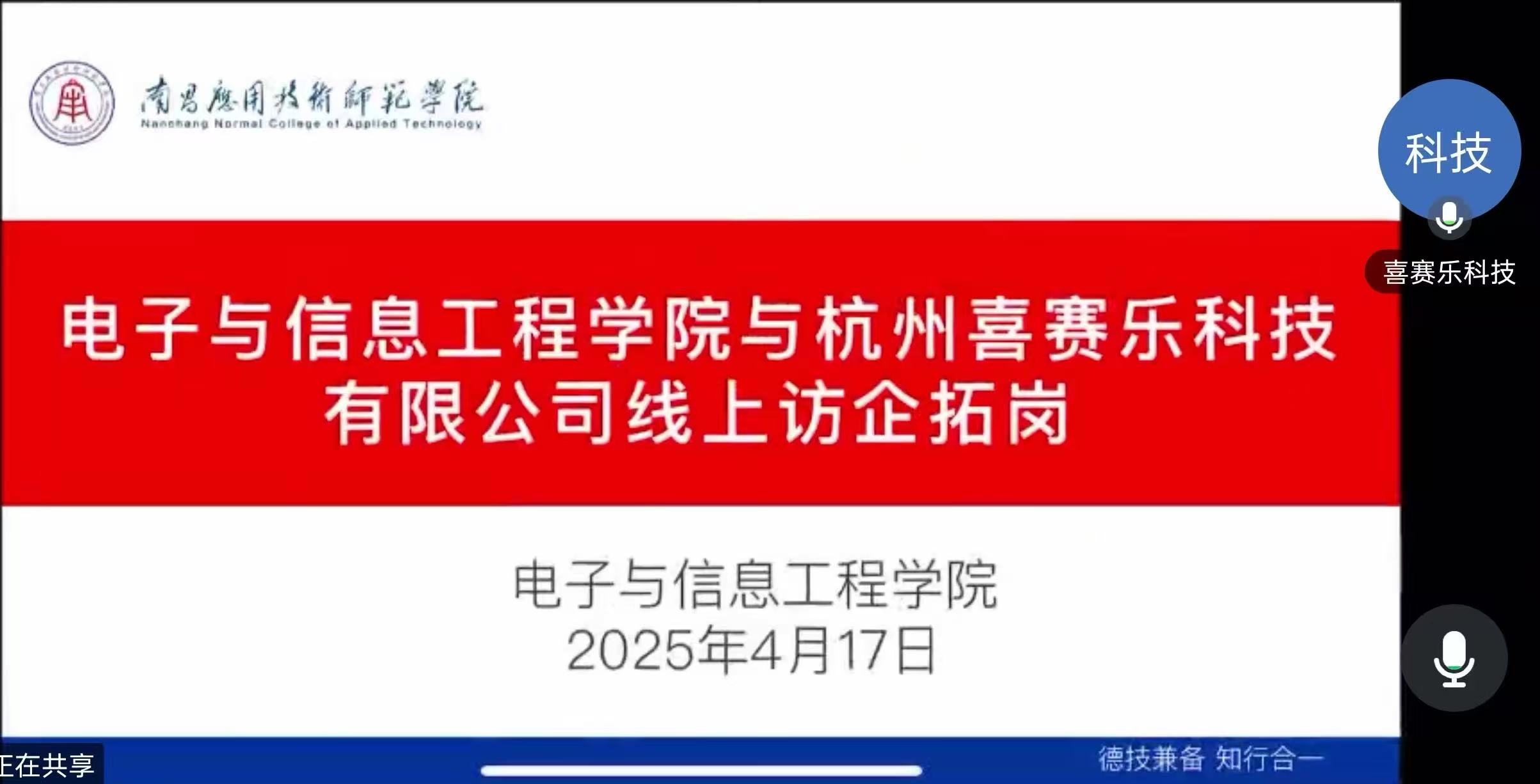 为深化产学研融合,拓宽学生就业渠道,4月17日,beat365党总支副书记黄金标与杭州喜赛乐科技有限公司、成都赛恩计算机网络技术有限公司、广州鑫谊计算机科技有限公司、义乌市曼丽贸易有限公司开展访企拓岗专项行动。此次访企旨在通过校企面对面线上交流,精准对接人才需求,推动产学研深度合作。