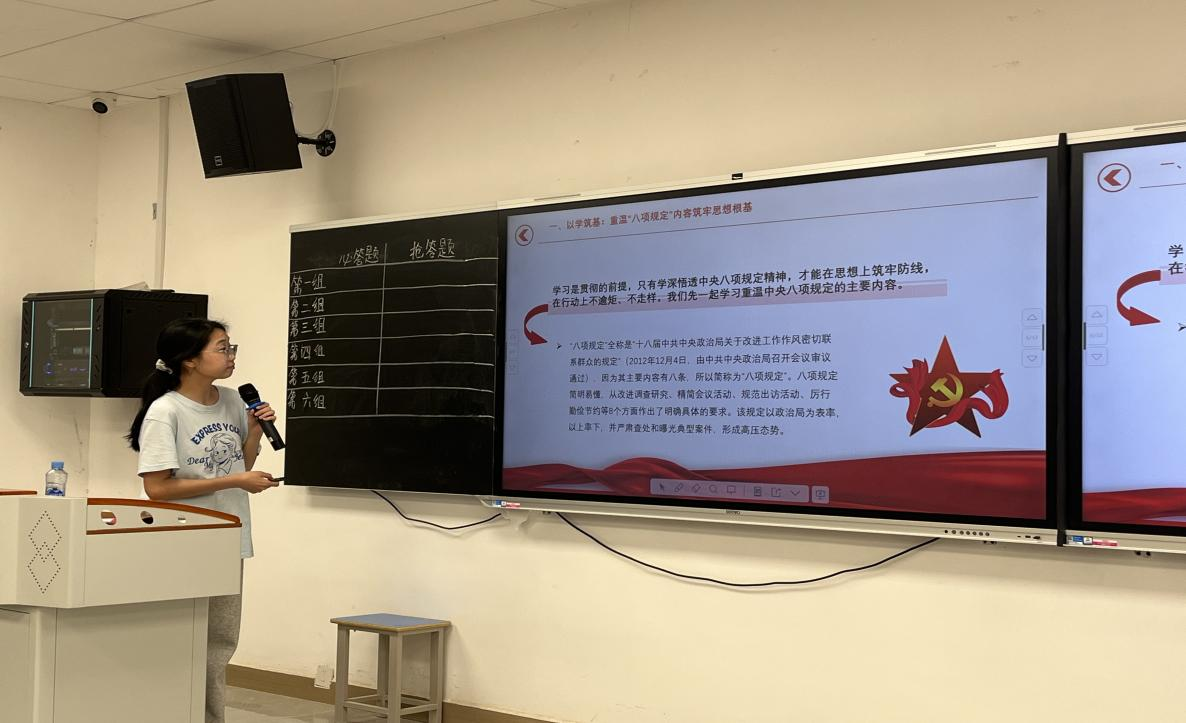 为深入贯彻中央八项规定精神学习教育,强化师生纪律意识,筑牢拒腐防变的思想防线,传承红色基因,弘扬廉洁文化,促进党团融合发展。beat365中文登录入口党总支于5月14日在沁苑2教A座109教室举办“严守中央八项规定精神 弘扬清风正气”为主题的党团知识竞赛,“集芯成路”和“红星闪耀”红色班级学生参加此次活动。