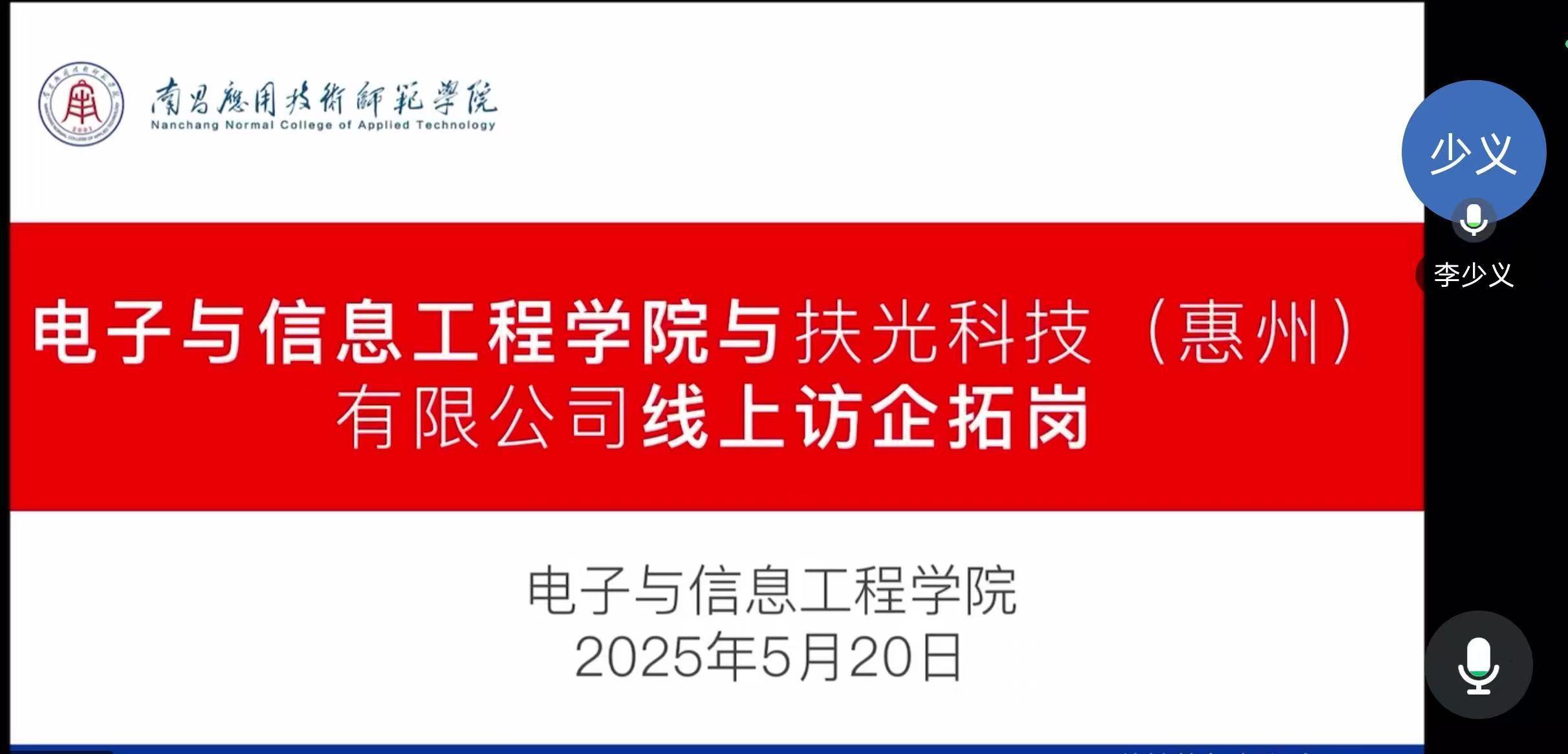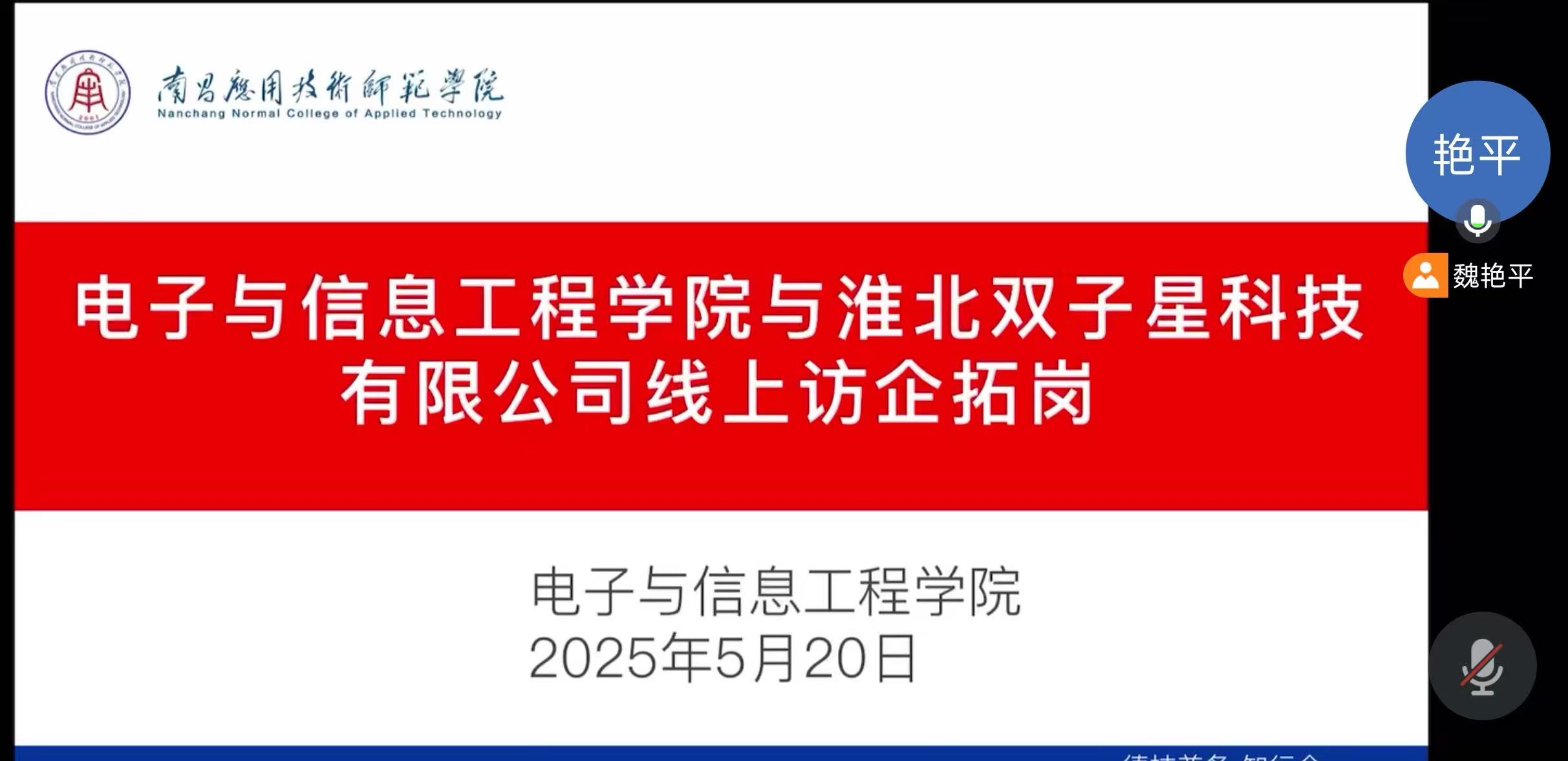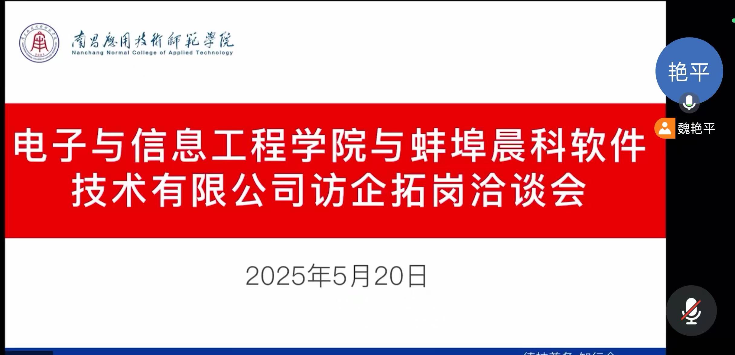 为进一步拓宽学生就业渠道,增加就业岗位,深化一体化育人机制,提升人才培养质量,5月20日,beat365中文登录入口成功举办线上“访企拓岗促就业”专项行动,与江西咏亮科技有限公司、扶光科技(惠州)有限公司、淮北双子星科技有限公司、蚌埠晨科软件技术有限公司等四家企业共同探讨了如何进一步深化产教融合,拓展学生实习就业渠道。校长助理李少义、电信学院院长魏艳平出席会议,会议由就业专员曾思雨主持。