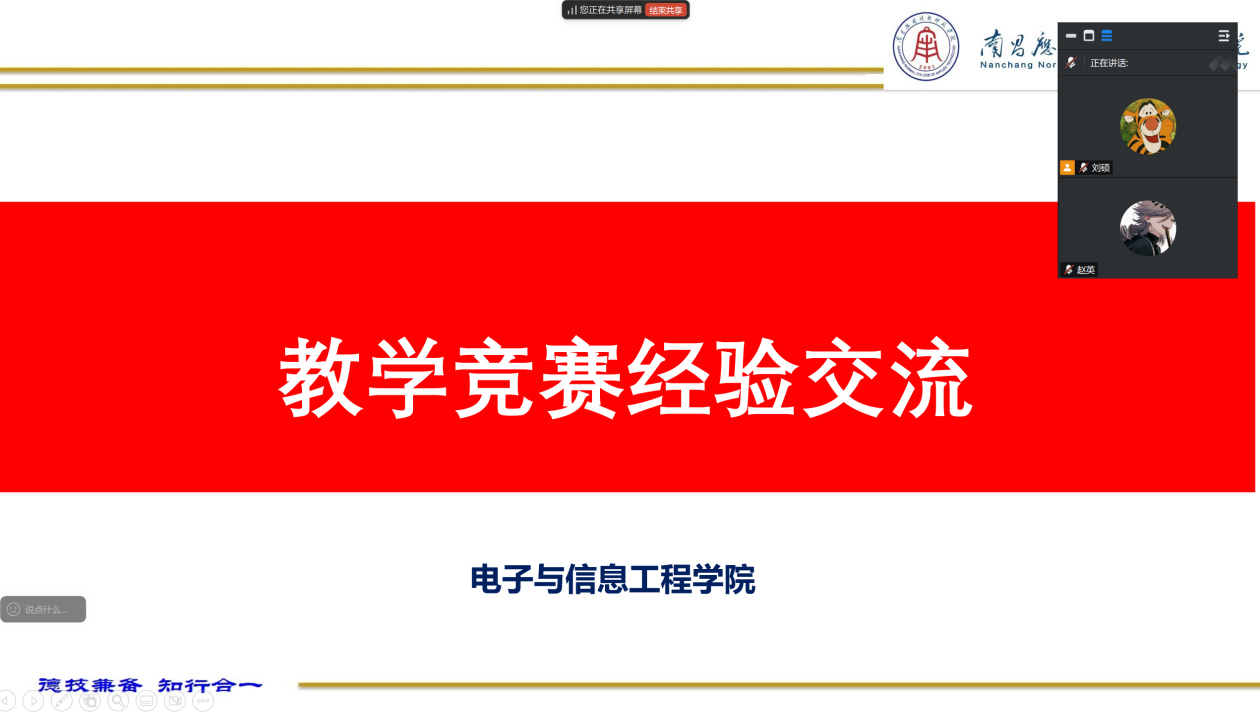 为深化专业教学改革,推动课程创新与教师能力提升,2025年5月27日下午两点,beat365中文登录入口数字媒体技术系通过线上平台召开教学竞赛经验交流会。教研室刘硕、王慧颖、赵英等骨干教师参会,围绕教学竞赛设计、课程思政融合及产教融合实践展开深度研讨。