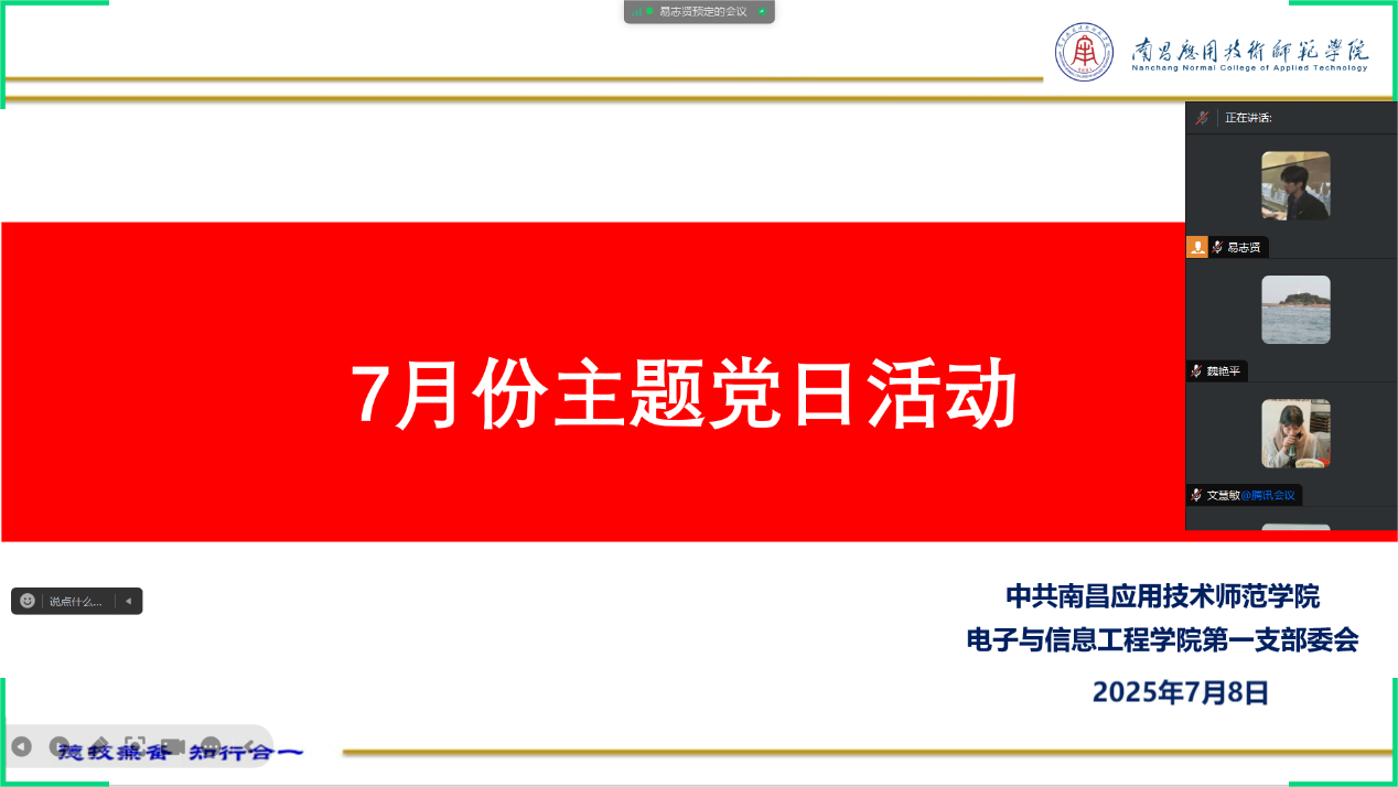 为庆祝中国共产党成立104周年,弘扬伟大建党精神,结合深入贯彻中央八项规定精神学习教育。beat365中文登录入口第一支党部于7月8号开展7月主题党日活动。此次活动由党支部书记魏艳平主持,全体党员参加。