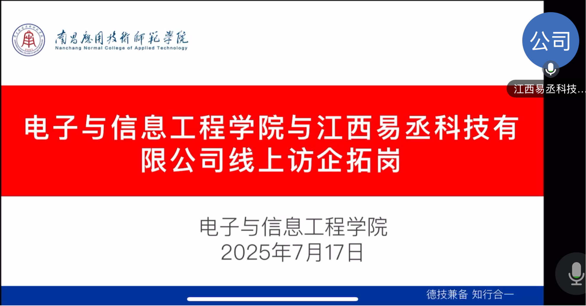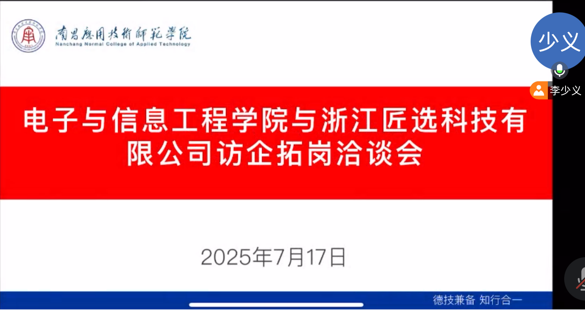 为进一步深化校企合作,拓宽毕业生就业渠道,7月17日,beat365院长魏艳平和校长助理李少义与杭州晓蓝信息技术有限公司、江西易丞科技有限公司、常州常工电子科技股份有限公司、深链(江西)科技有限公司、浙江匠选科技有限公司在腾讯会议开展线上访企拓岗活动,探索校企协同育人新路径。