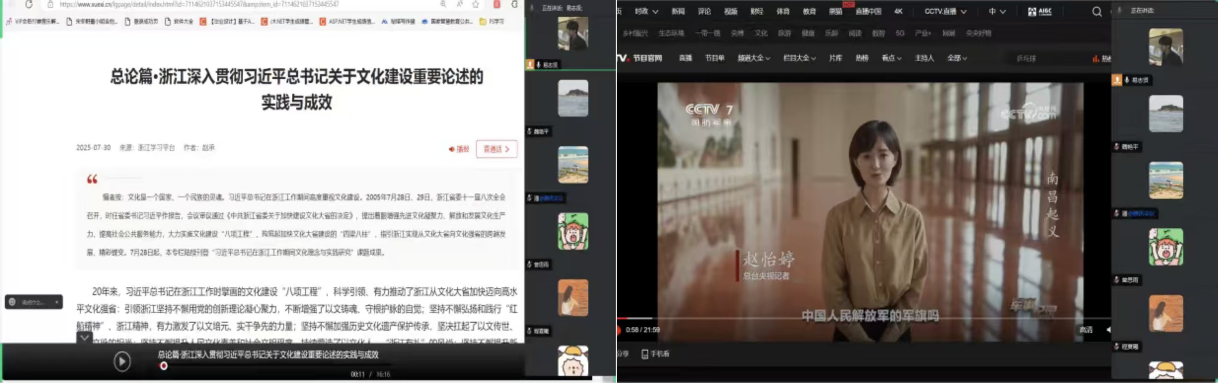 会上,由魏艳平领学《习近平总书记在浙江工作期间推进文化建设的理论价值与经验启示》,并认真抓好《党员网络行为正负面清单》的学习贯彻落实,强调党员要深刻领会其中的核心要义与实践要求。随后,组织各党员线上观看《红色记忆:南昌起义》。观看以后,大家表示仿佛置身于革命现场,深切感受到革命先辈为国家和人民浴血奋战的崇高精神。