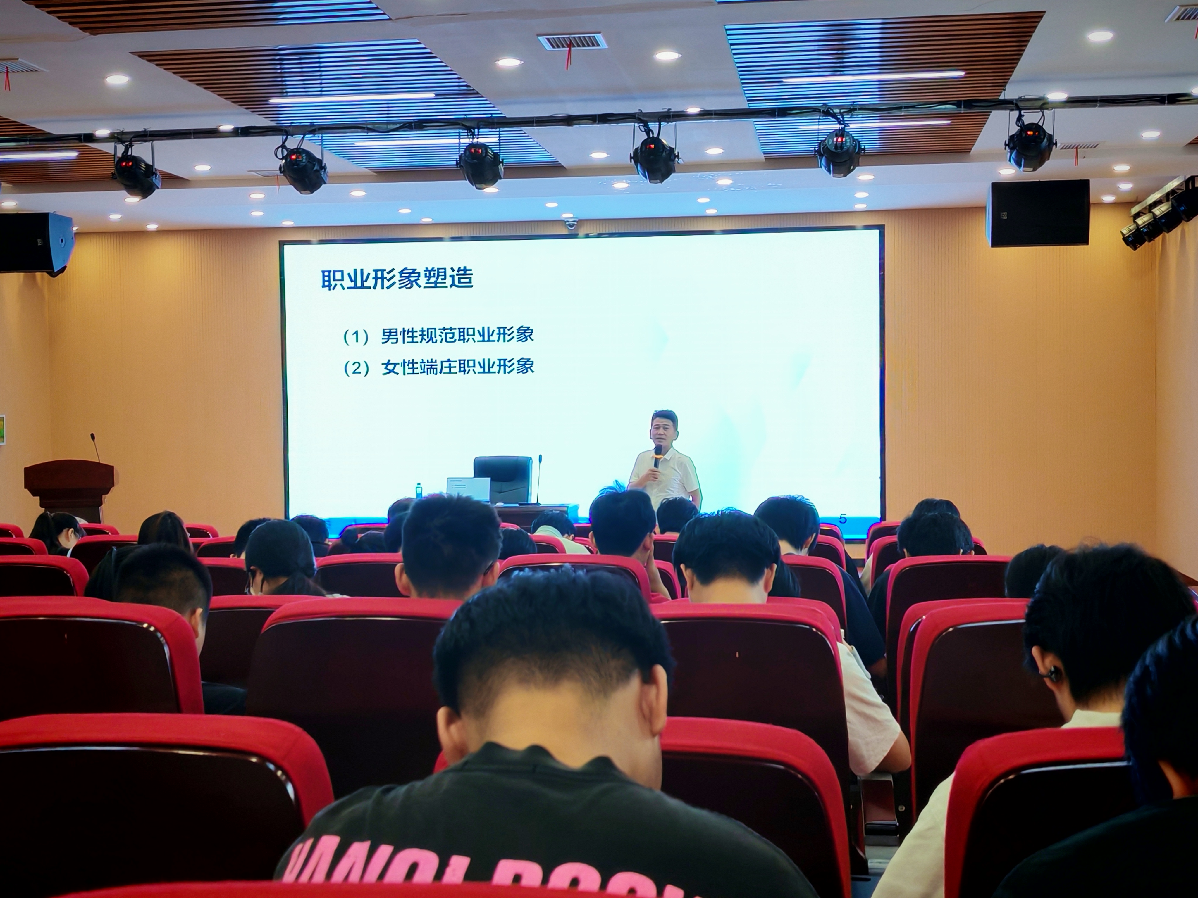 为了深入贯彻落实就业育人理念,帮助学生精准把握职业发展方向,搭建教育与行业需求紧密对接的桥梁,9月23日,beat365中文登录入口于报告厅开展就业育人讲座。此次讲座由学院党总支副书记黄金标主讲,全体毕业生参加。