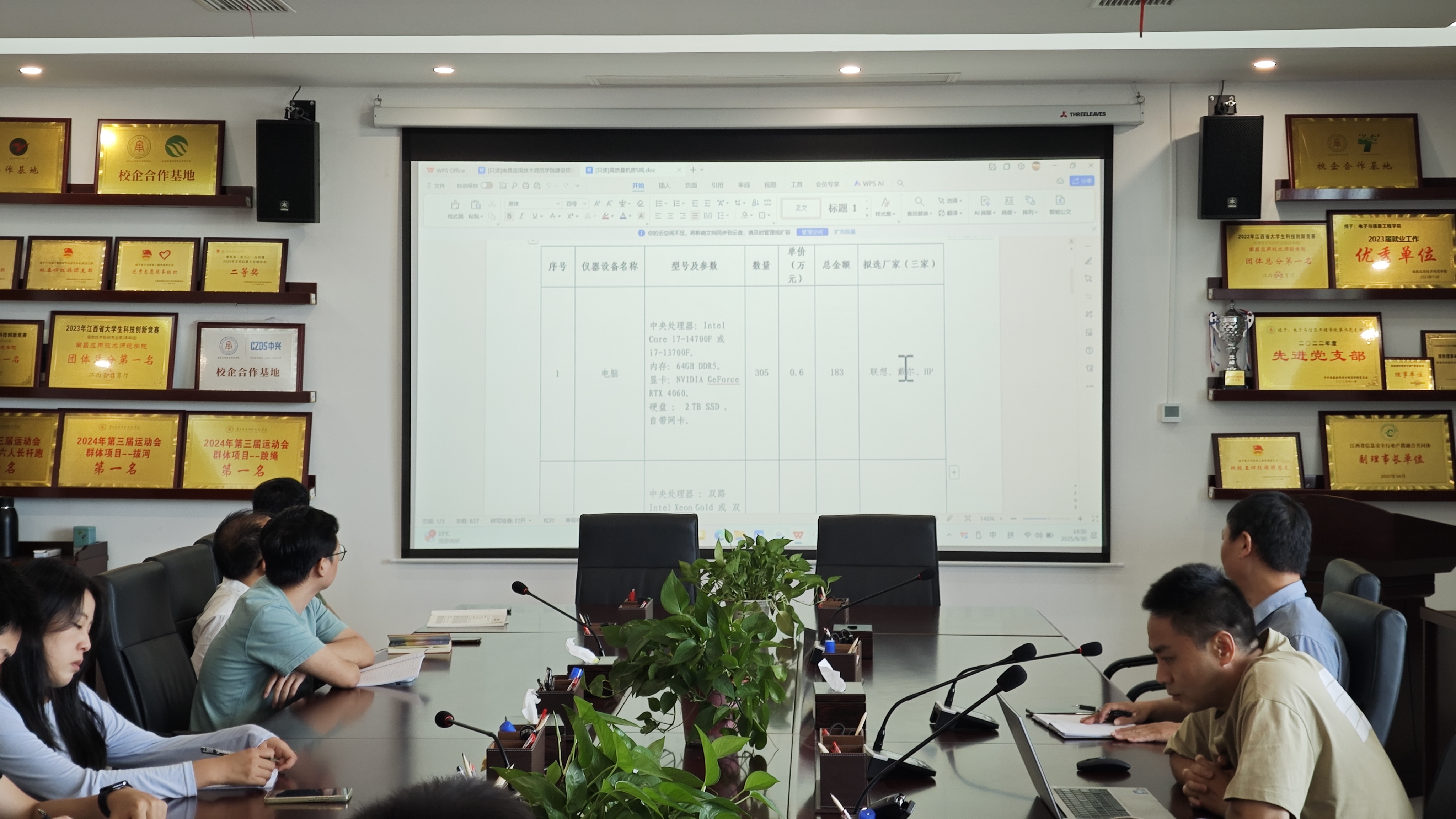 计算机系曹璐主任详细介绍了当前学院专业机房的运行状况,主要是专业软件运行卡顿。曹璐建议升级配置,如采用Intel Core i7处理器、64GB内存和4060显卡,并对电脑作了询价与费用测算。